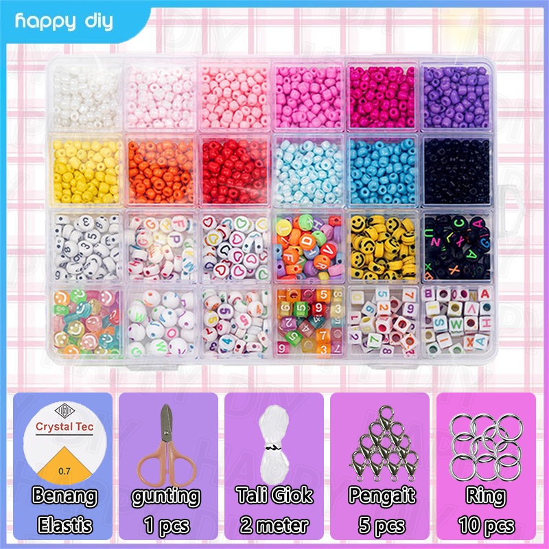 Happy Diy Manik Manik Set Aesthetic - 1 Set Diy Manik Manik - Manik Manik 1 Set Kotak Lengkap - Dilengkapi Dengan 10 Ka