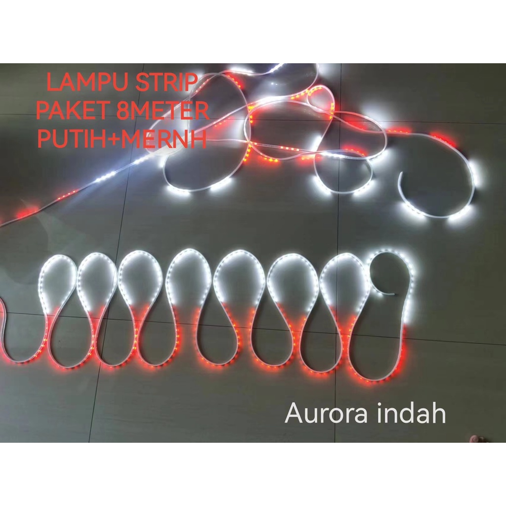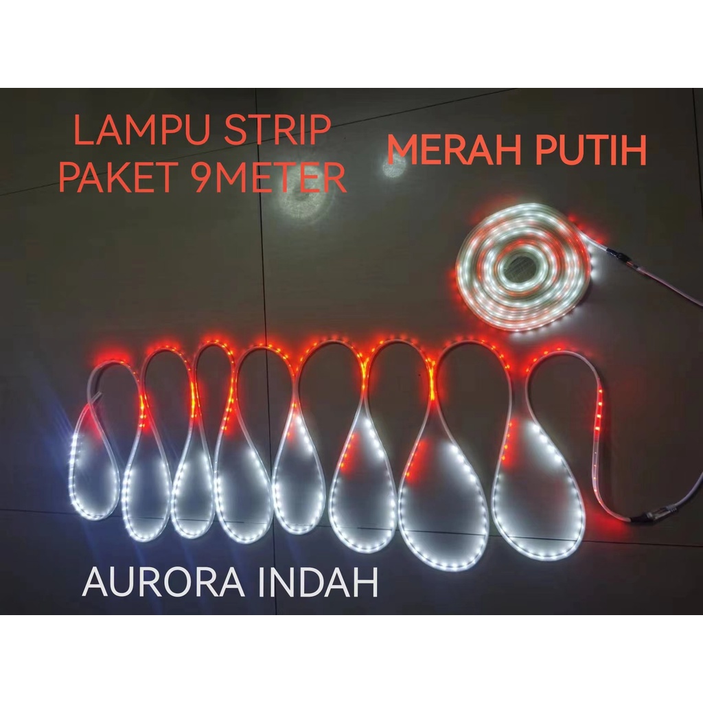 Lampu LED Strip Selang paket merah putih 3528 2835 220V + Adaptor 8M Outdoor Led Strip Agustus Lampu Hias
