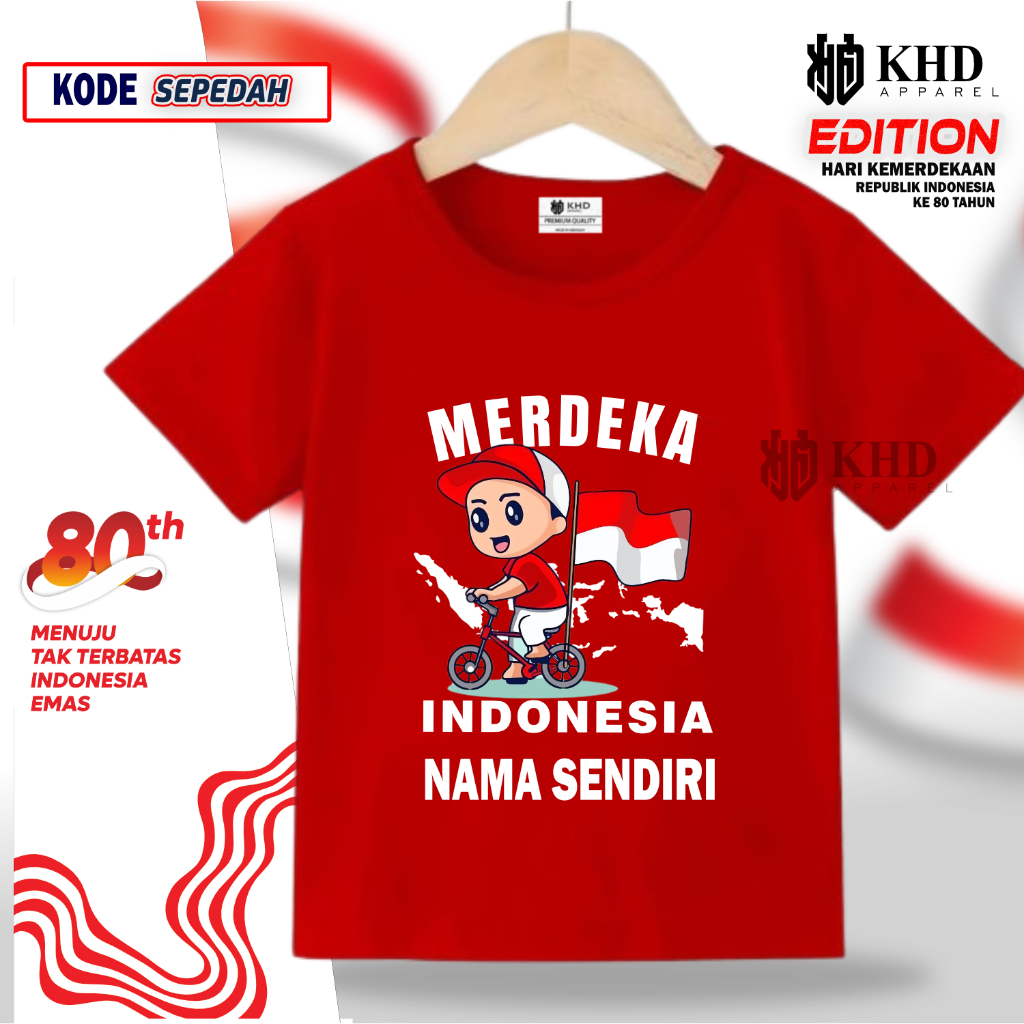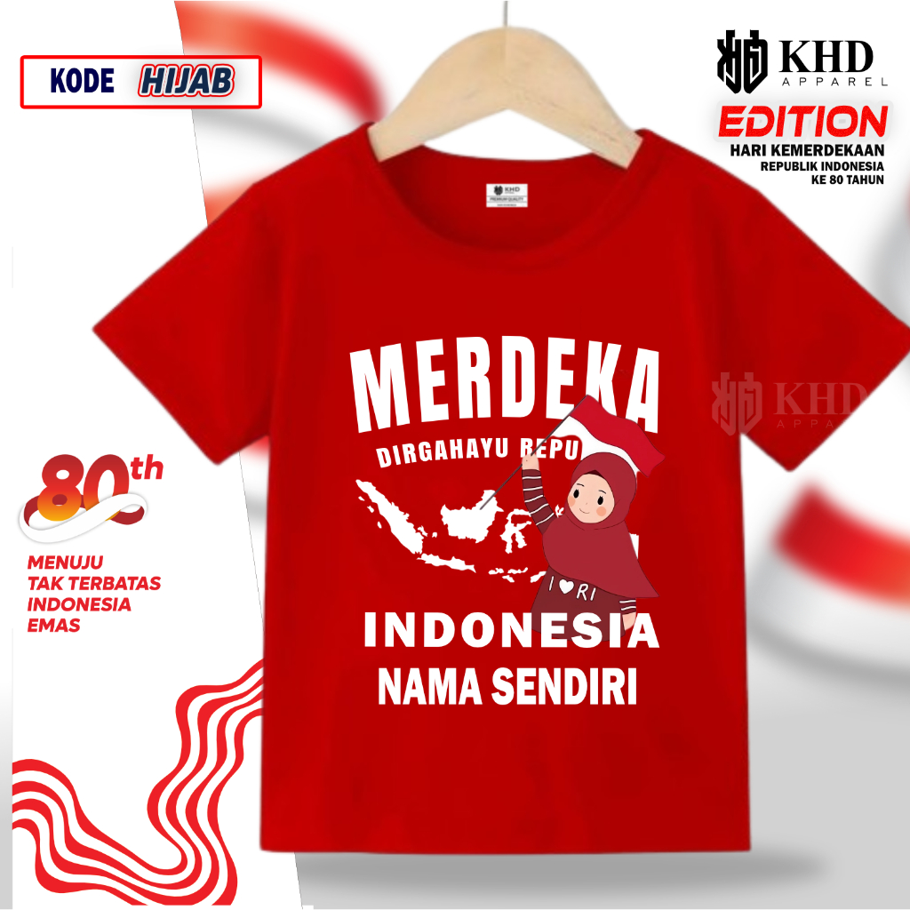KAOS ANAK GRATIS NAMA SENDIRI HUT RI KE 80 KAOS 17 AGUSTUS INDONESIA MERDEKA 2025 LEMBUT TERMURAH