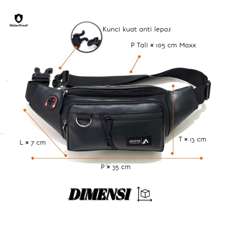 ARJUNA TAS SELEMPANG PRIA WANITA TAS PINGGANG SLING BAG MULTIFUNGSI BAHAN WATERPROOF ANTI AIR