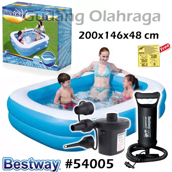 BESTWAY 54005 Kolam Renang Karet Anak Jumbo Besar 2 meter Rectangular Family Pool [200x146 x48cm]