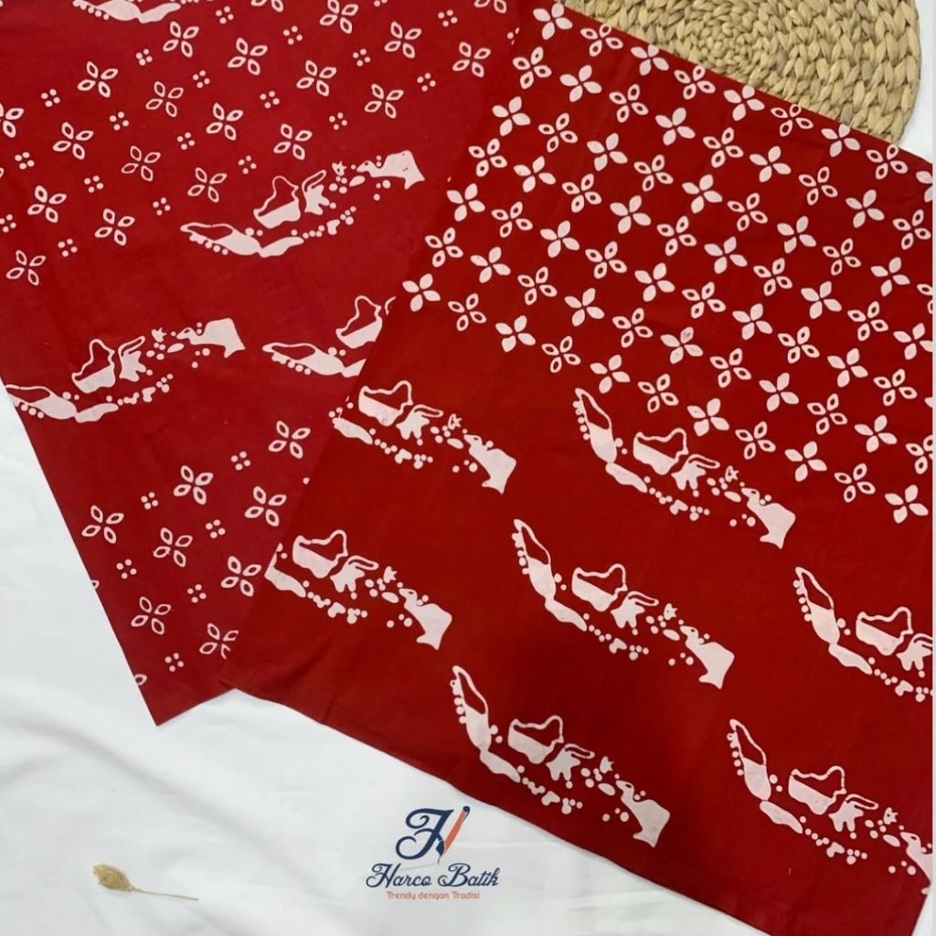 Kain Batik Cap Original Merah Putih Edisi Kemerdekaan Indonesia - Motif Peta Indonesia