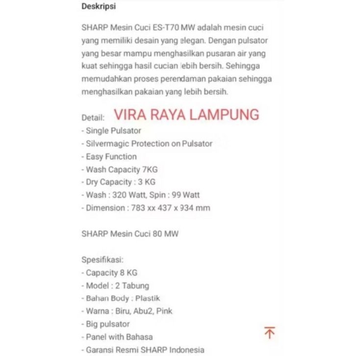 PROMO Cargo SHARP EST 70 MW Mesin Cuci 2 Tabung 7 Kg ORIGINAL