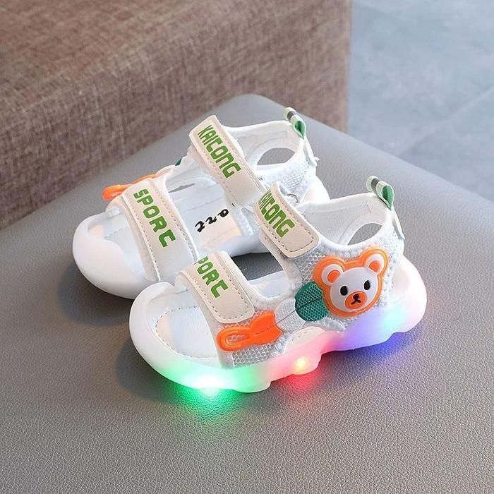 Sepatu Sandal lampu LED Sendal Anak Perempuan Laki Laki Import Terbaru - Putih, 25