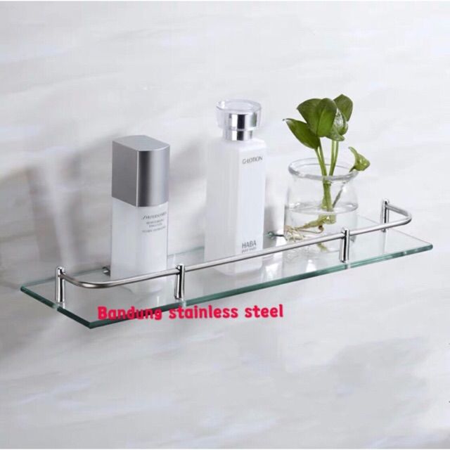 Rak Tempat sabun kaca tebal 1 susun persegi sampo kamar mandi