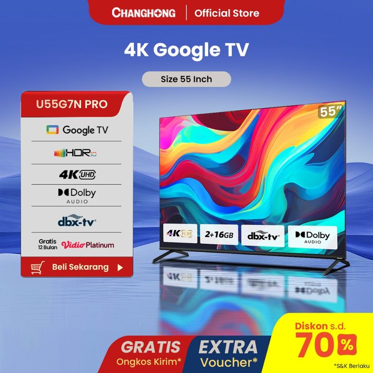 Google Tv Changhong 55 Inch Smart Tv 4K Uhd Hdr10+Dbx Dolby Audio Google Assistant Netflix Youtube Digital Tv U55G7N Pro
