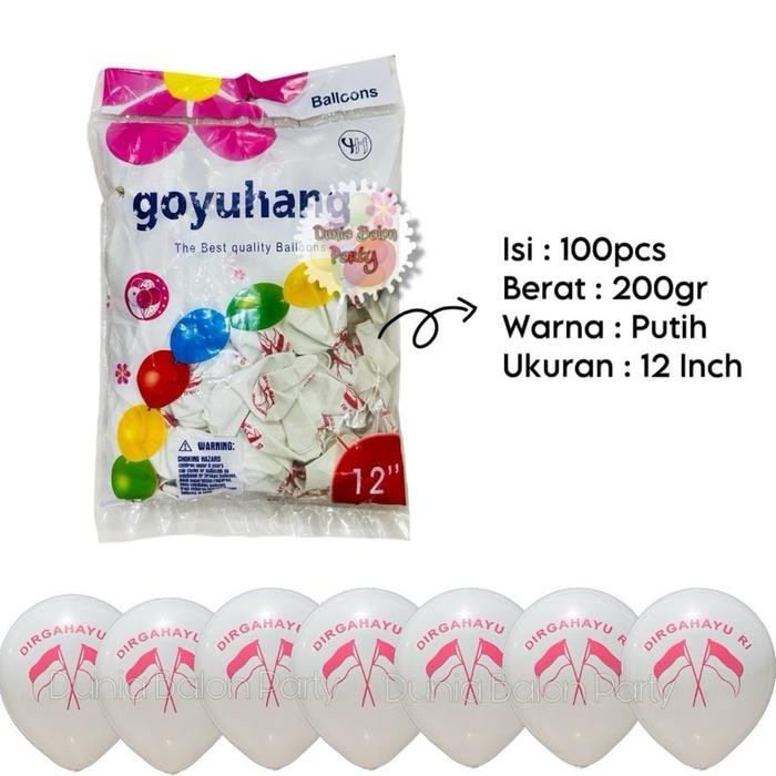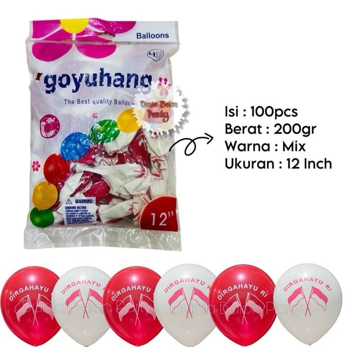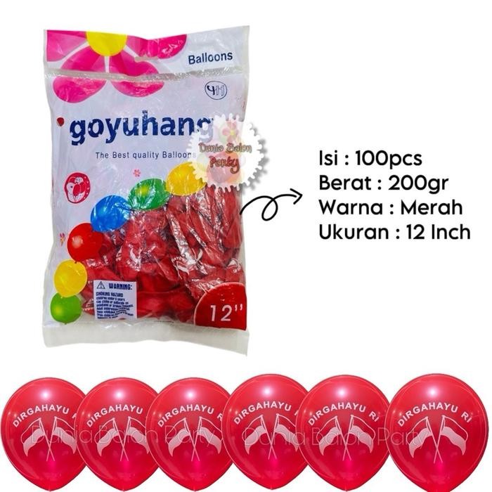200GR - ISI 100Pcs Balon Latex DIRGAHAYU RI / Balon Merah Putih 17 agustus