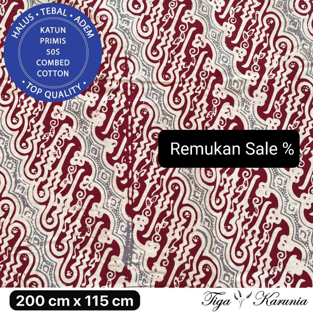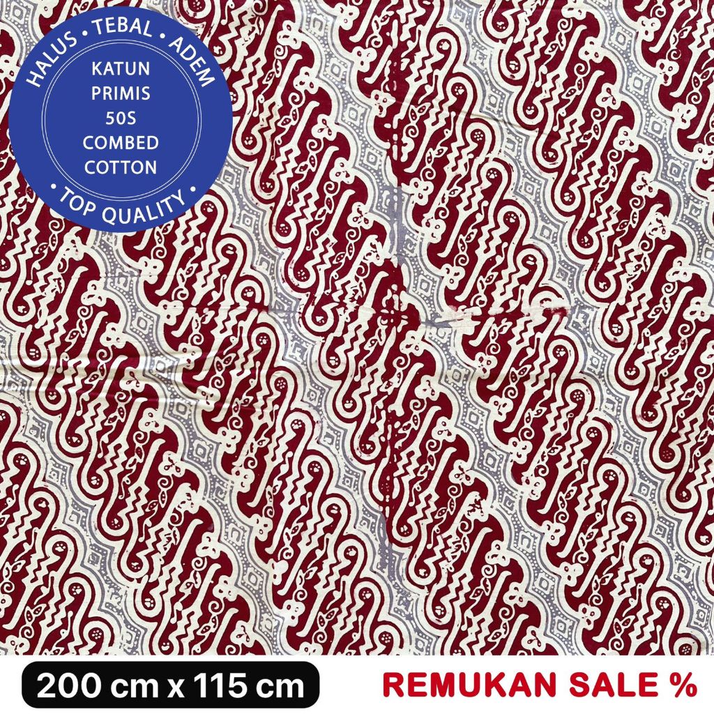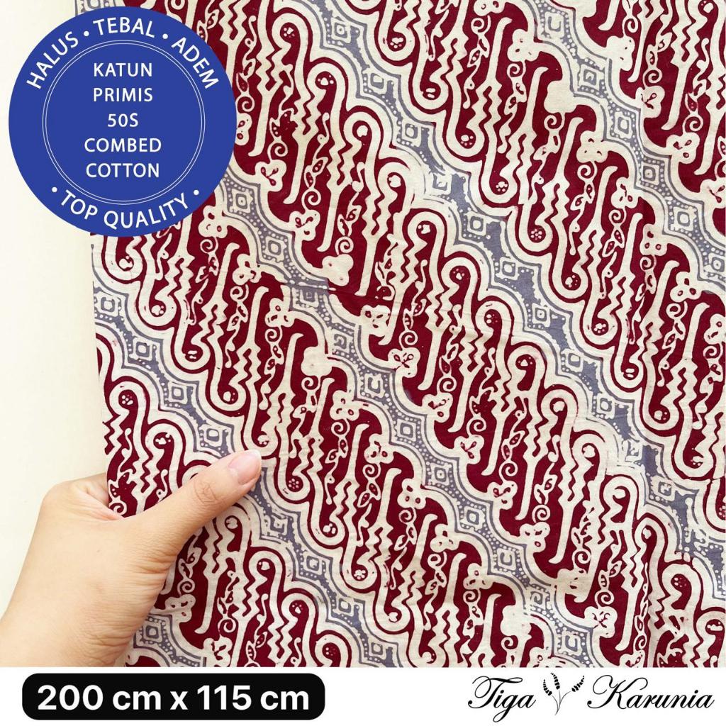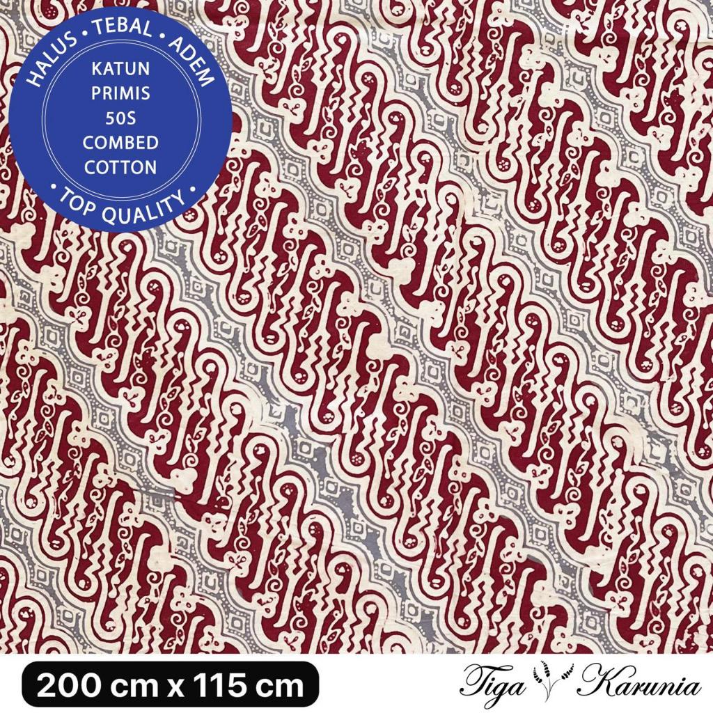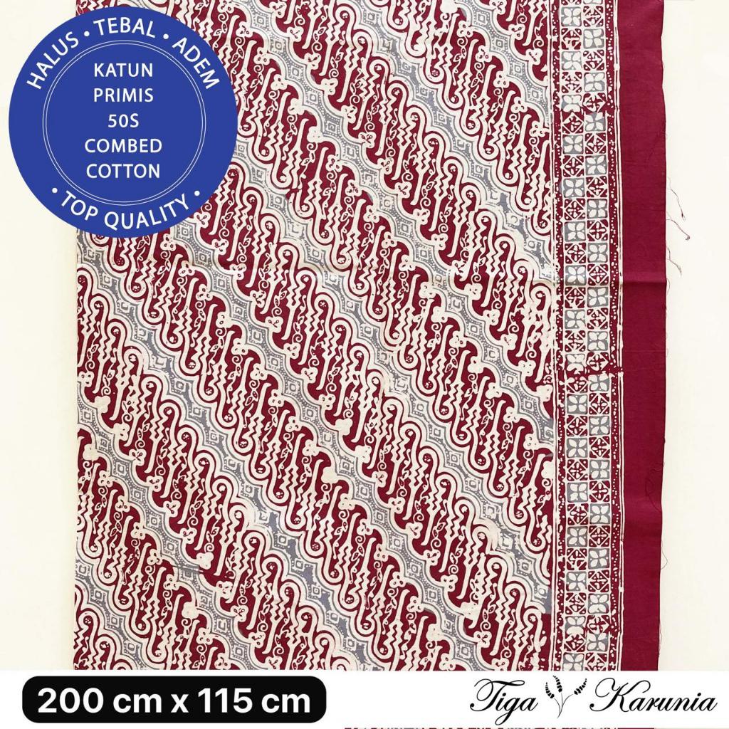Kain Batik Cap Premium Solo 100% Handmade Parang Maroon Grey Marun Abu KATUN PRIMIS