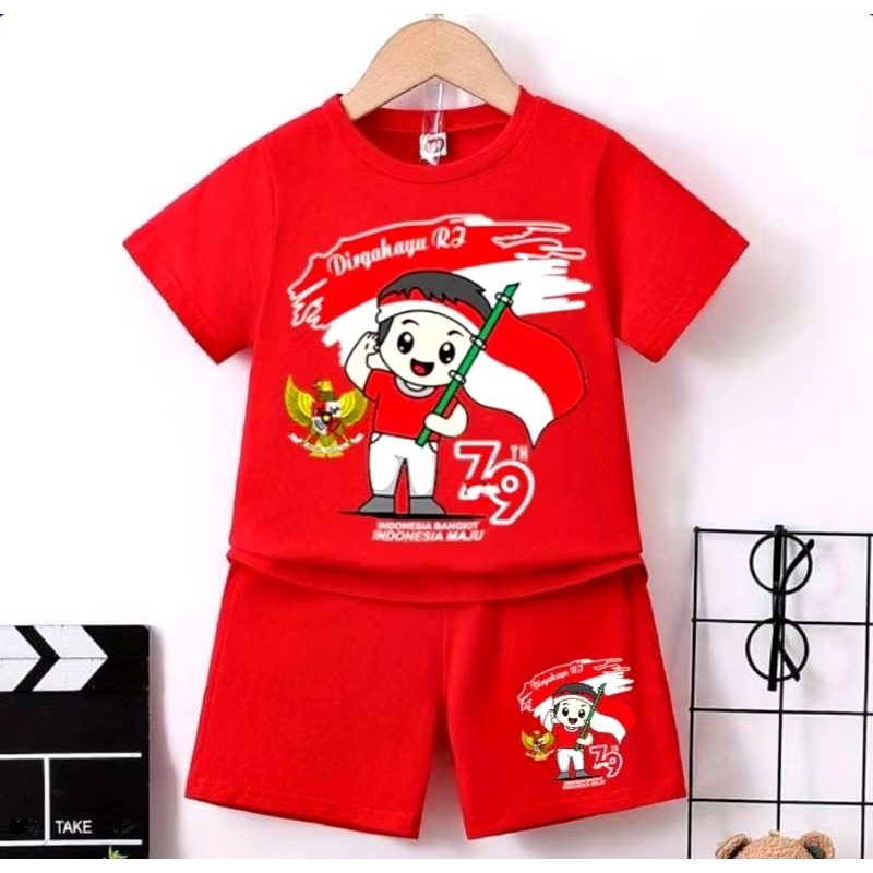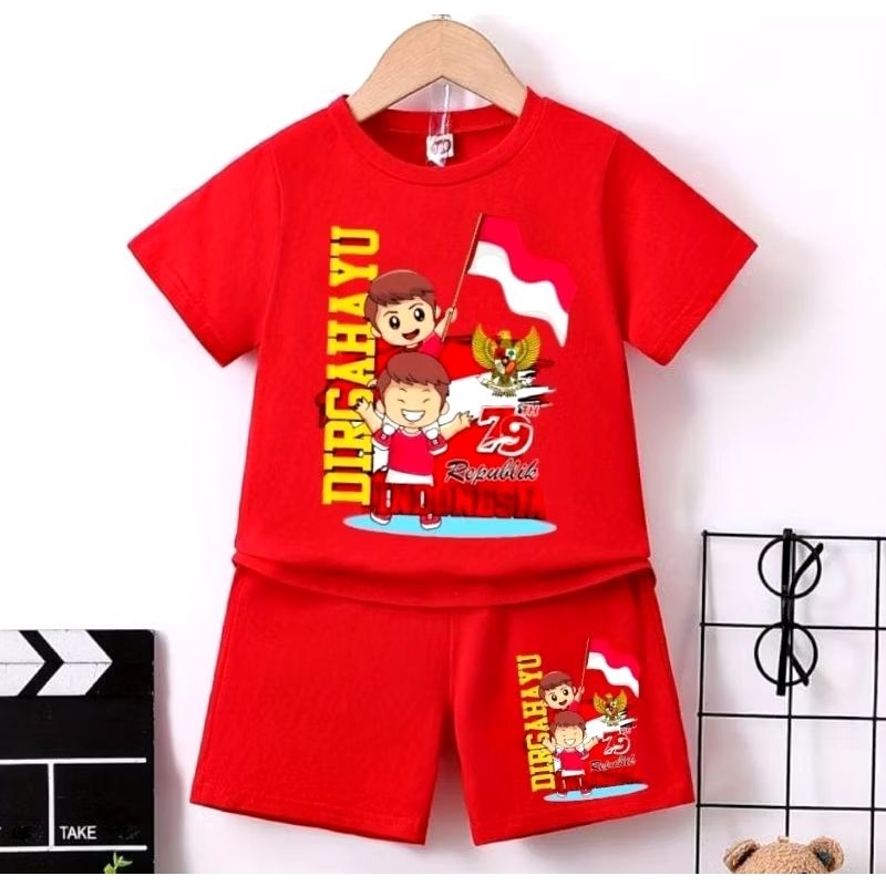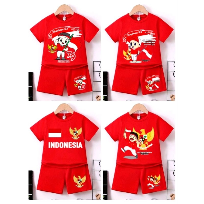 Setelan anak laki-laki/perempuan motif 17 Agustus/kemerdekaan 2-9 tahun