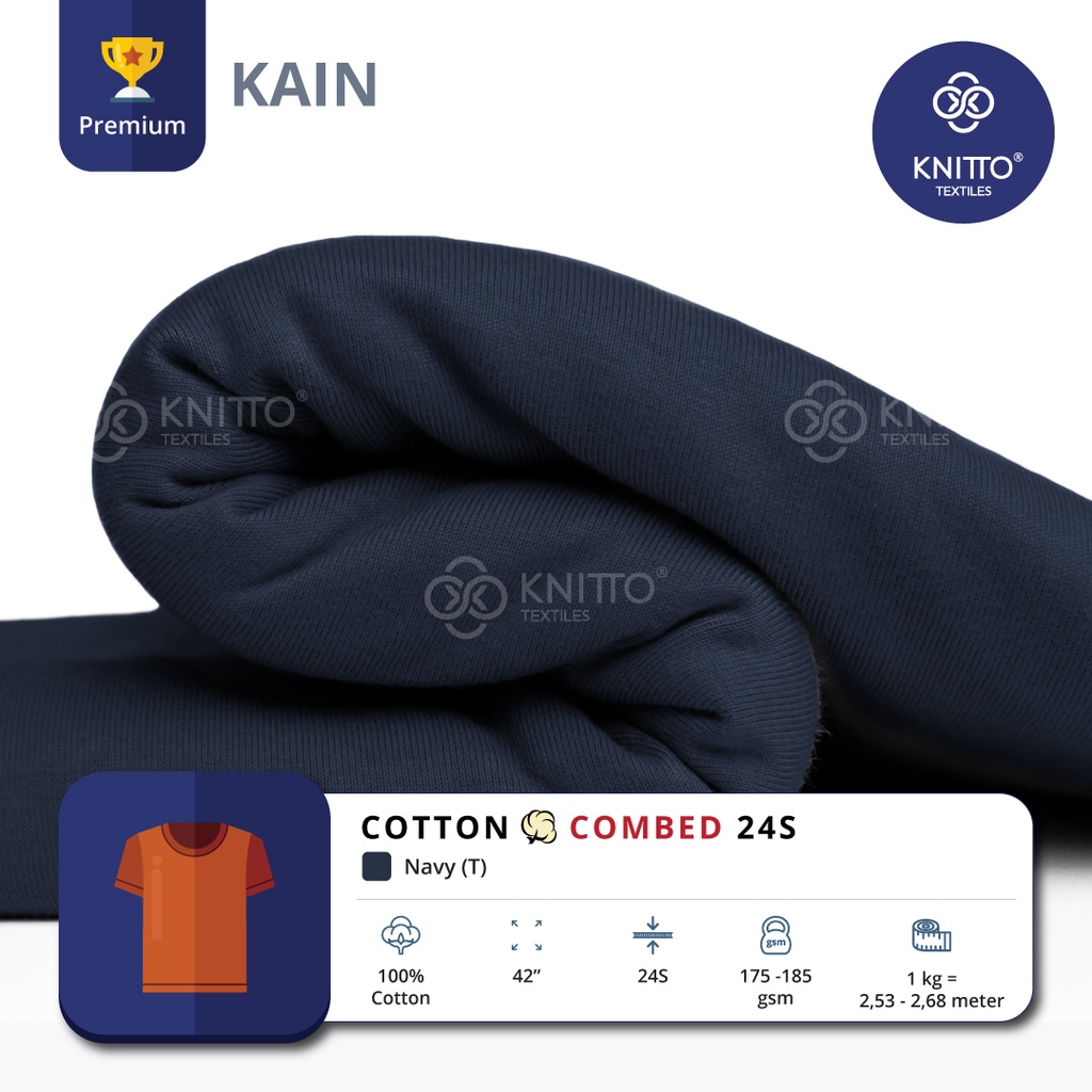 KAIN KAOS COTTON COMBED 24S NAVY ( BAHAN KAOS ) - KNITTO