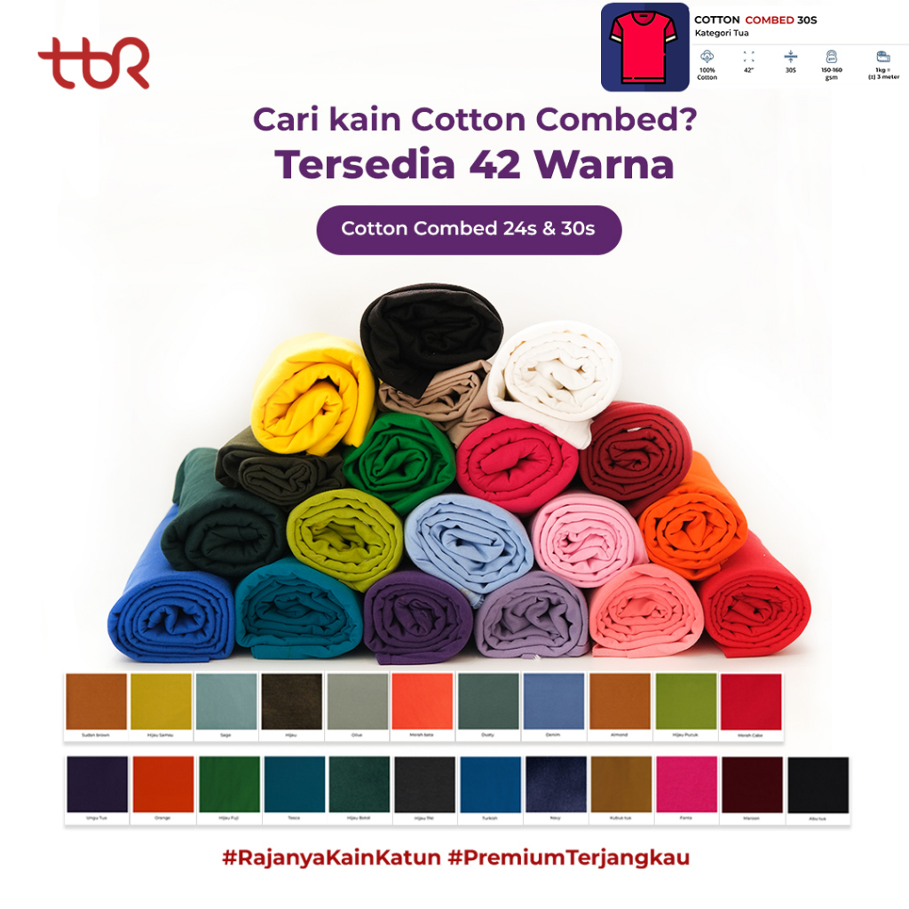 Abu Tua, Maroon, Merah Cabe, Fanta, Kuning Busuk Tua, Navy, Turkis, Hijau Tni, Hijau Botol, Tosca, Hijau Fuji, Orange, Ungu Tua, Hijau Pucuk, Merah Bata, Benhur, Almond, Denim, Hijau Samsu, Olive, Sudan Brown, Dusty Green, Sage Green, Magenta, Cokla Kopi, Burgundy