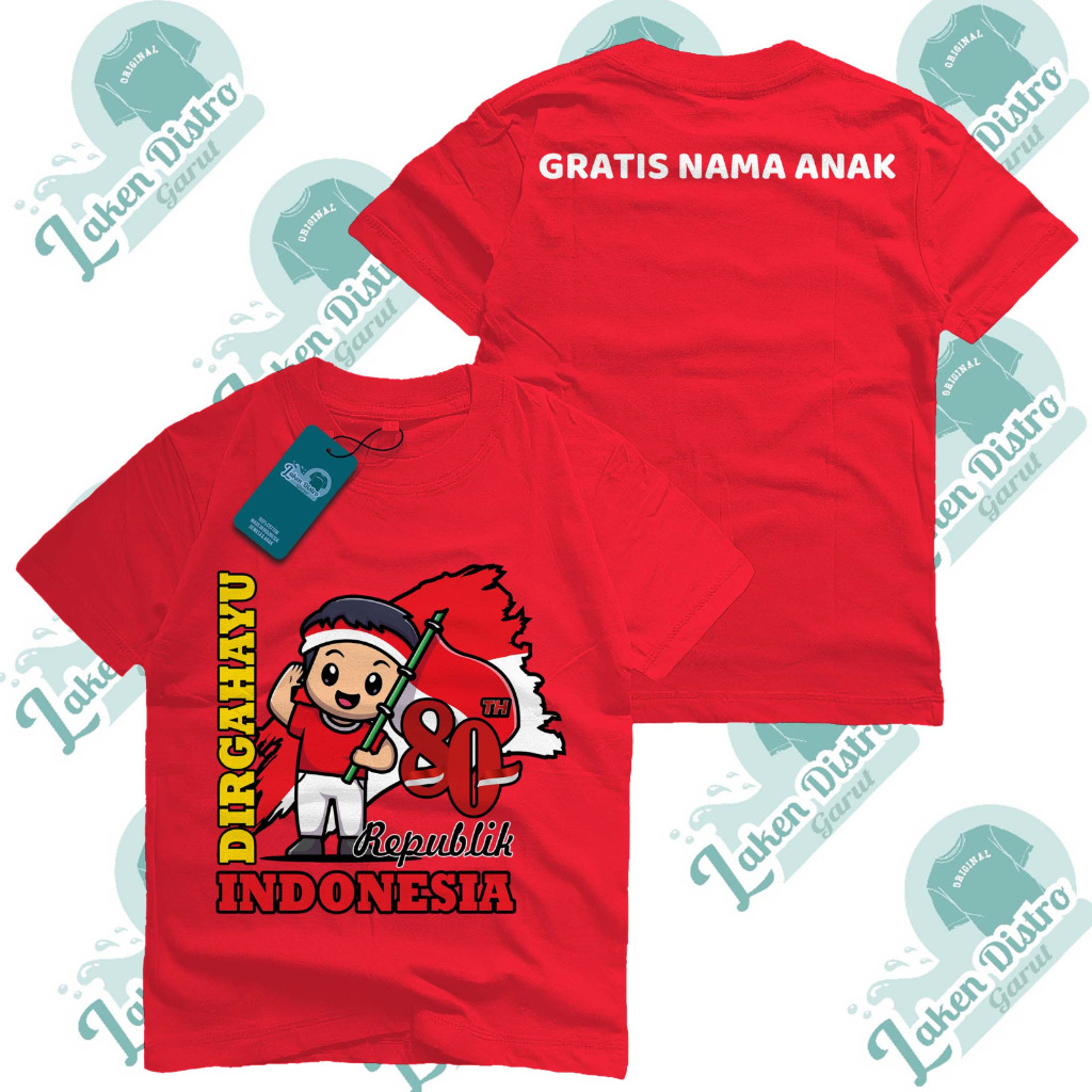 Laken distro Official kemerdekaan 17 Agustus Baju Anak Costum Nama Bahan Cotton Combad 30S 1-13 thn