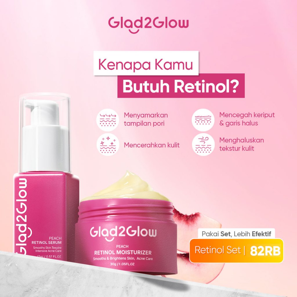 【Retinol Set】Glad2Glow 2pcs bundle Skincare Paket---Moisturizer+Serum Peach Retinol Moisturizer dengan kandungan campura