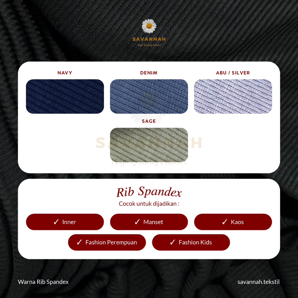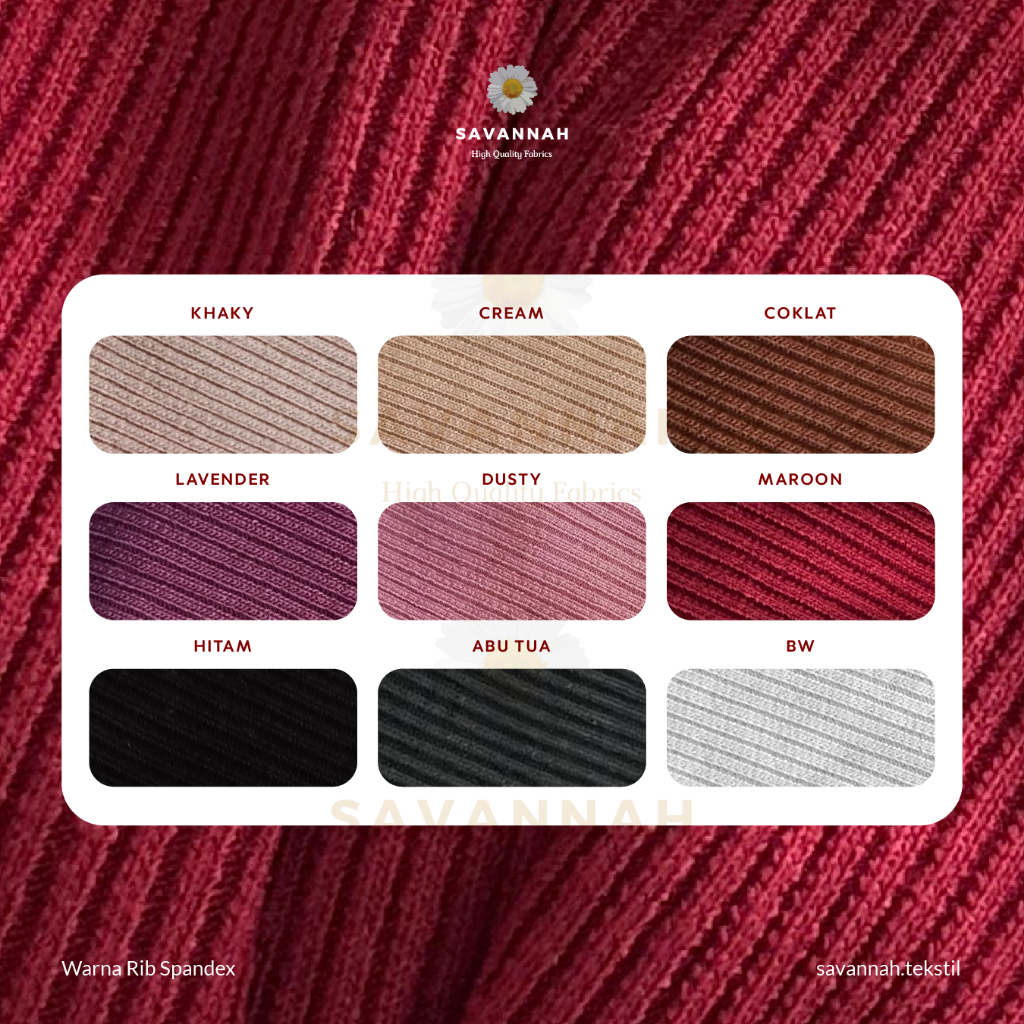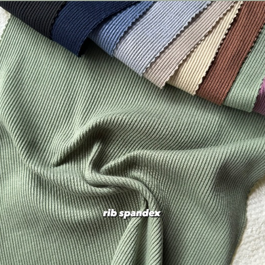 Kain Rib Cotton Spandex kaos eceran Rib Spandek banyak warna Per 1000 Gram lebar 24 - 25 inch
