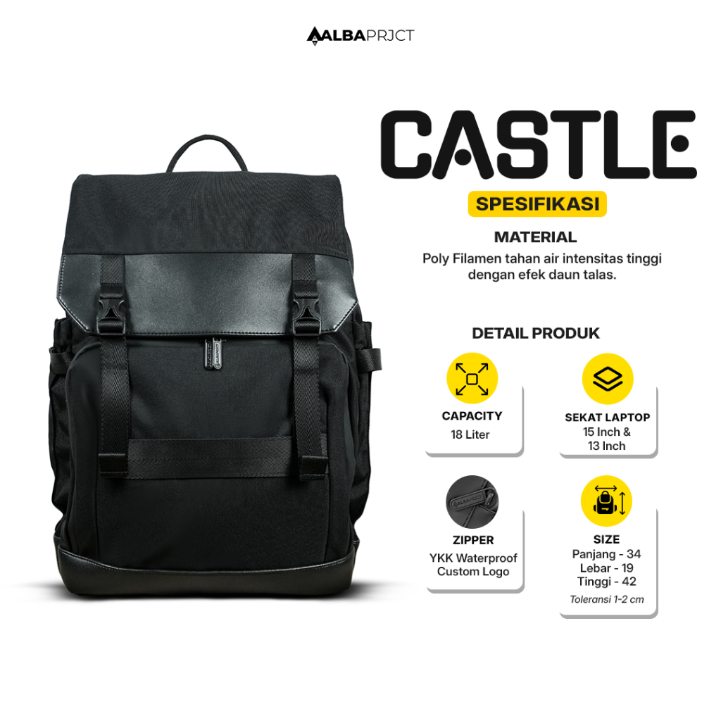 ALBA PROJECT - Backpack Castle 18L Tas Ransel Laptop Pria Waterresistant