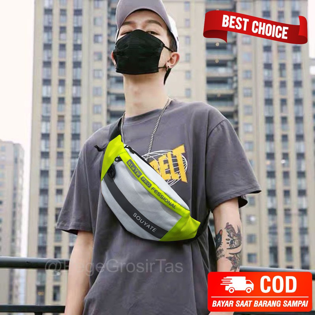 TAS SELEMPANG WAISTBAG OVAL KOMBINASI BISA TAS PINGGANG PRIA WANITA UNISEX - PG 8834