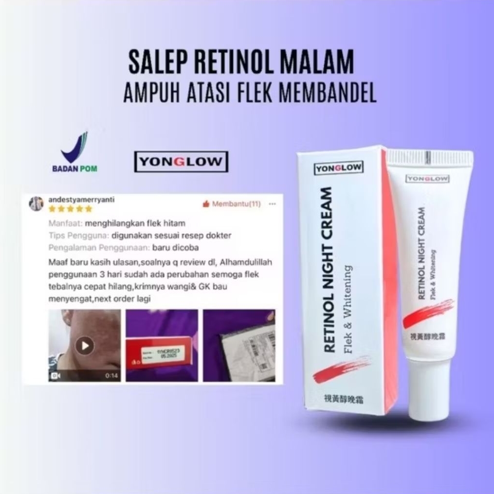Yonglow Salep Flek Malam Retinol Bintik Noda Hitam Membandel BPOM Night Whitening Cream Flek Penghilang Noda Hitam Bekas