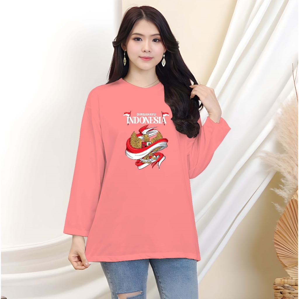 Kaos Oversize Lengan Panjang Dewasa 17 Agustus/Kaos Distro HUT RI Kemerdekaan Indonesia/Garuda Indonesia
