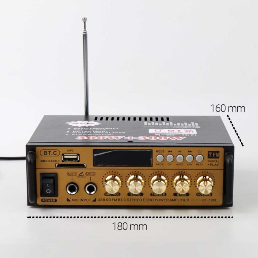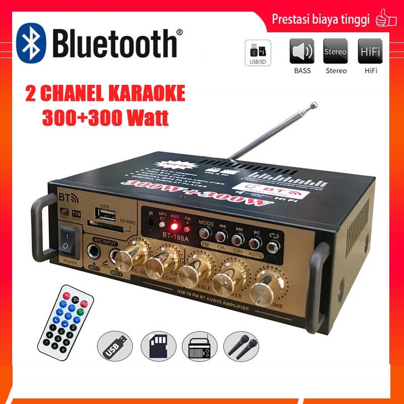 AMPLIFIER BLUETOOTH SUBWOOFER 600W BT-198E KARAOKE AMPLI POWER AMPLIF WIRELESS KERNDY 300W+300W HOME THEATER FM RADIO