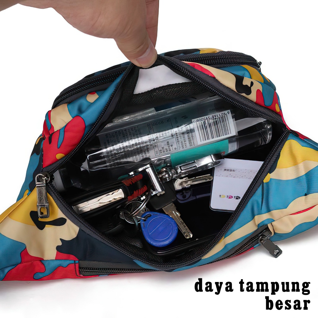 TAS SELEMPANG UNISEX PRIA WANITA TAS PINGGANG WAISTBAG LORENG WARNA WARNI - K-6