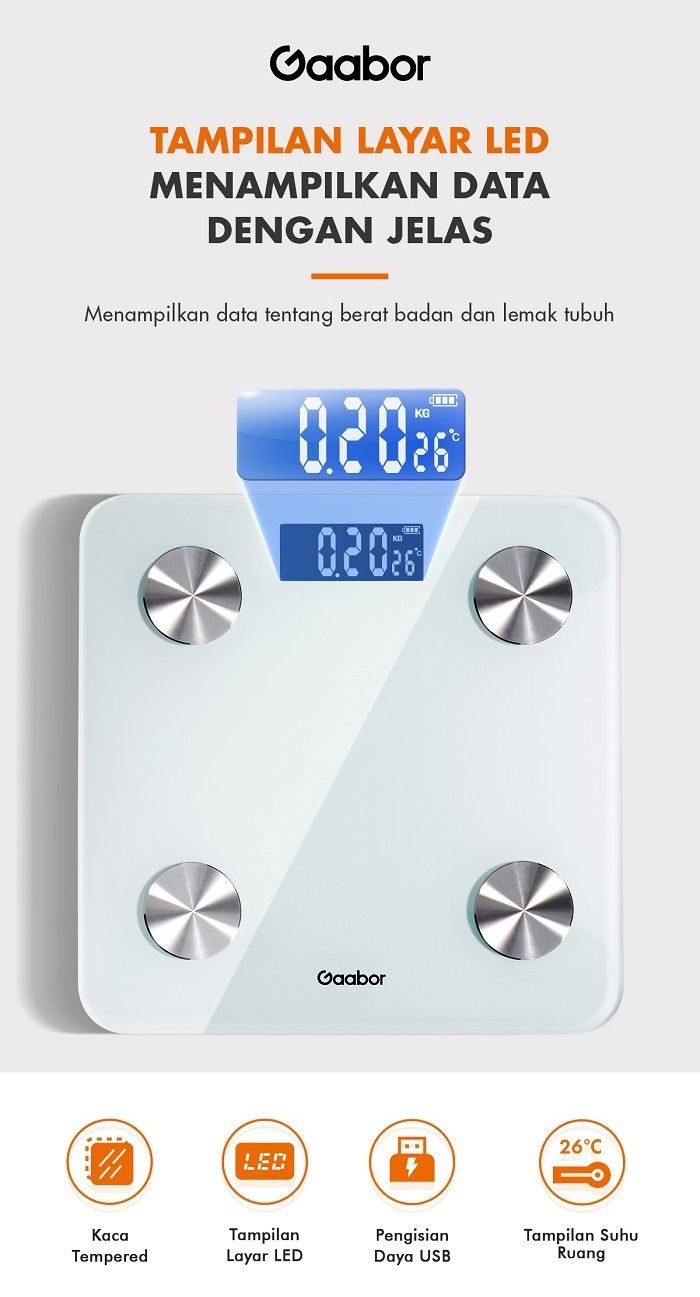 TERLARIS GAABOR TIMBANGAN PUTIH BADAN DIGITAL SMART BODY FAT SCALE USB CHARGING KACA ANTI PECAH - GWS-M02A