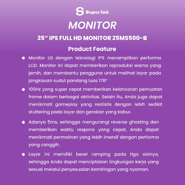 TERLARIS MONITOR LG 25MS500‑B 25″ FHD DENGAN FITUR AMD FREESYNC 100HZ, DUKUNGAN IPS, STYLISH DESAIN SLIM