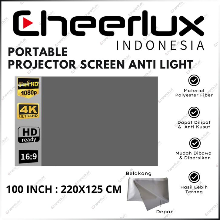 TERLARIS LAYAR PROYEKTOR ANTI LIGHT 100 INCH RATIO 16:9 | KAIN LAYAR PROYEKTOR FOLDED 4K | LAYAR PROJECTOR
