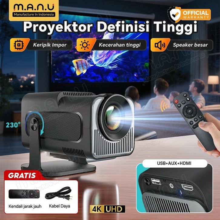 TERLARIS MANU PROYEKTOR HY320 HD 4K HDMI ANDROID 11.0 1080P WIFI 6 BLUETOOTH 1GB+8GB LCD TV ASLI SISTEM OPERASI 230° PRO