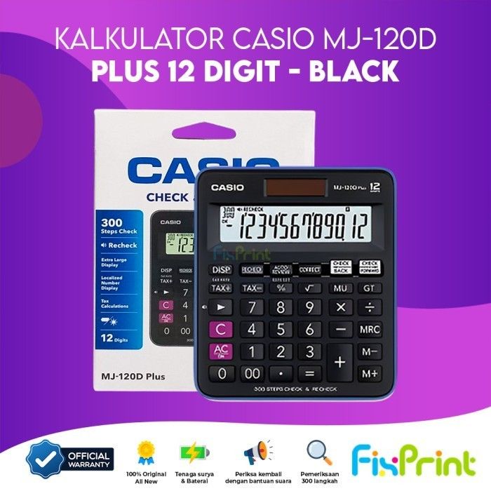 TERLARIS FIXPRINT CASIO KALKULATOR MJ 120D CALCULATOR DESKTOP CHECK CORRECT PLUS 12 DIGIT MJ-120D CEK ULANG BLACK PINK L