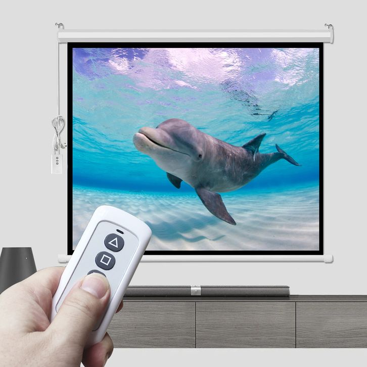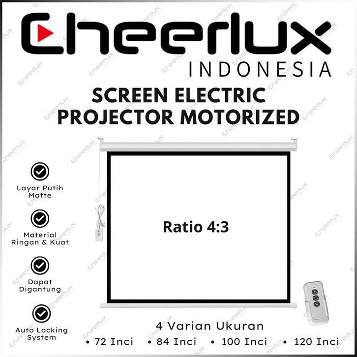 TERLARIS LAYAR PROYEKTOR ELEKTRIK MOTORIZED 120 INCH 4:3 DENGAN REMOTE | LAYAR PROYEKTOR OTOMATIS | SCREEN PROJECTOR CHE