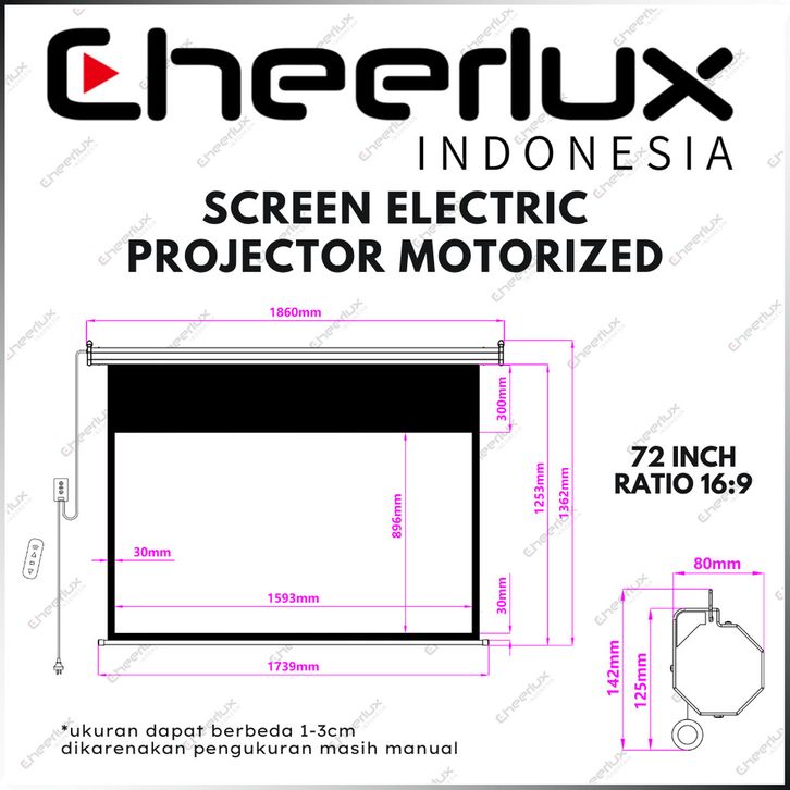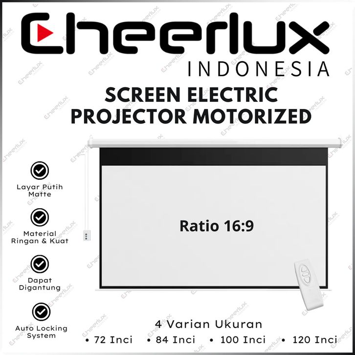 TERLARIS LAYAR PROYEKTOR ELEKTRIK MOTORIZED 72 INCH DENGAN REMOTE | SCREEN PROJECTOR OTOMATIS RATIO 16:9