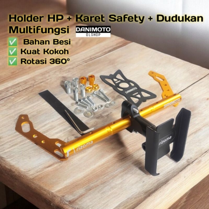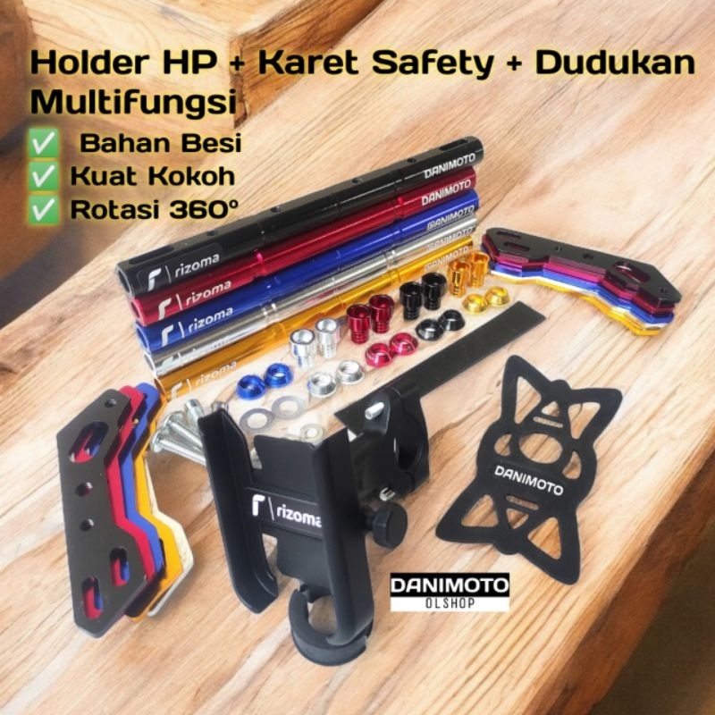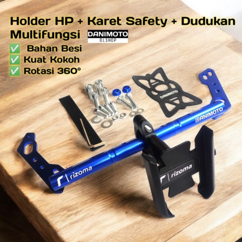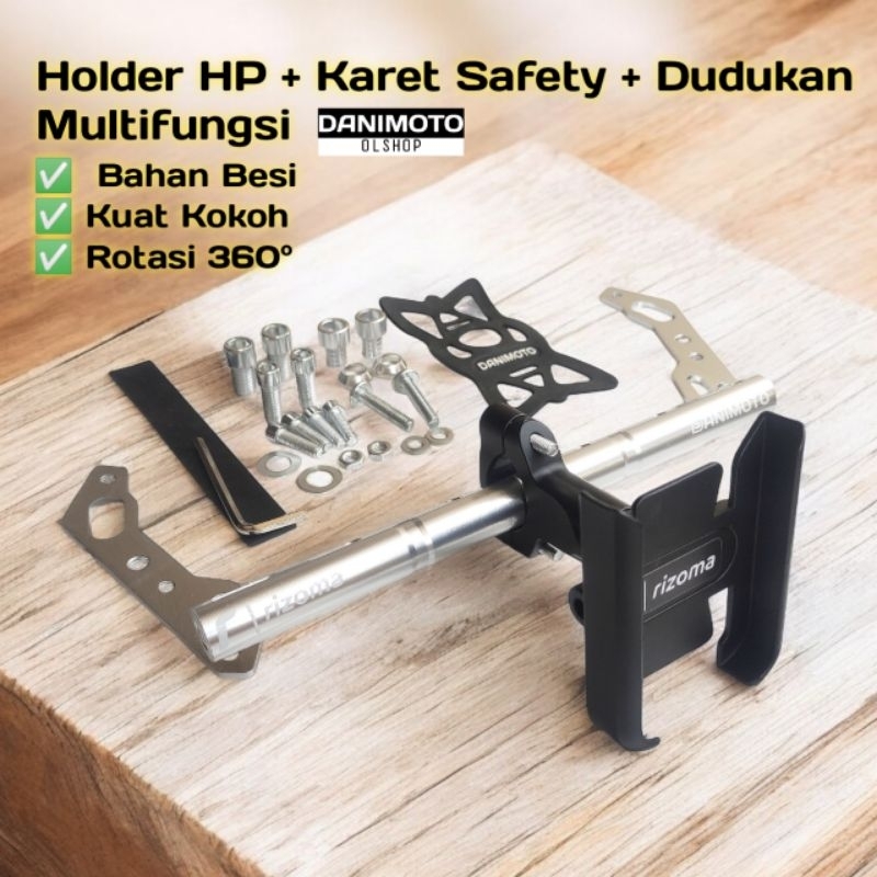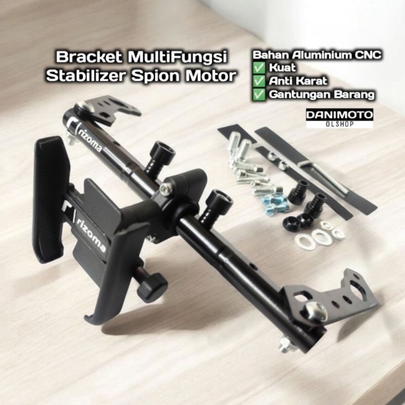 Holder HP Paket Lengkap + Dudukan Bracket Stabilizer Besi Spion Motor Vario Beat Scoopy Nmax Aerox