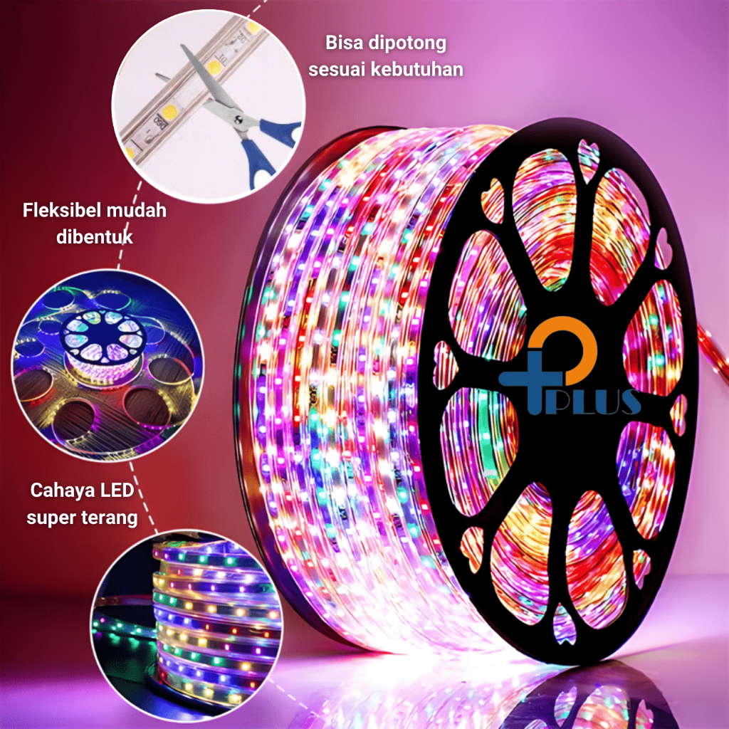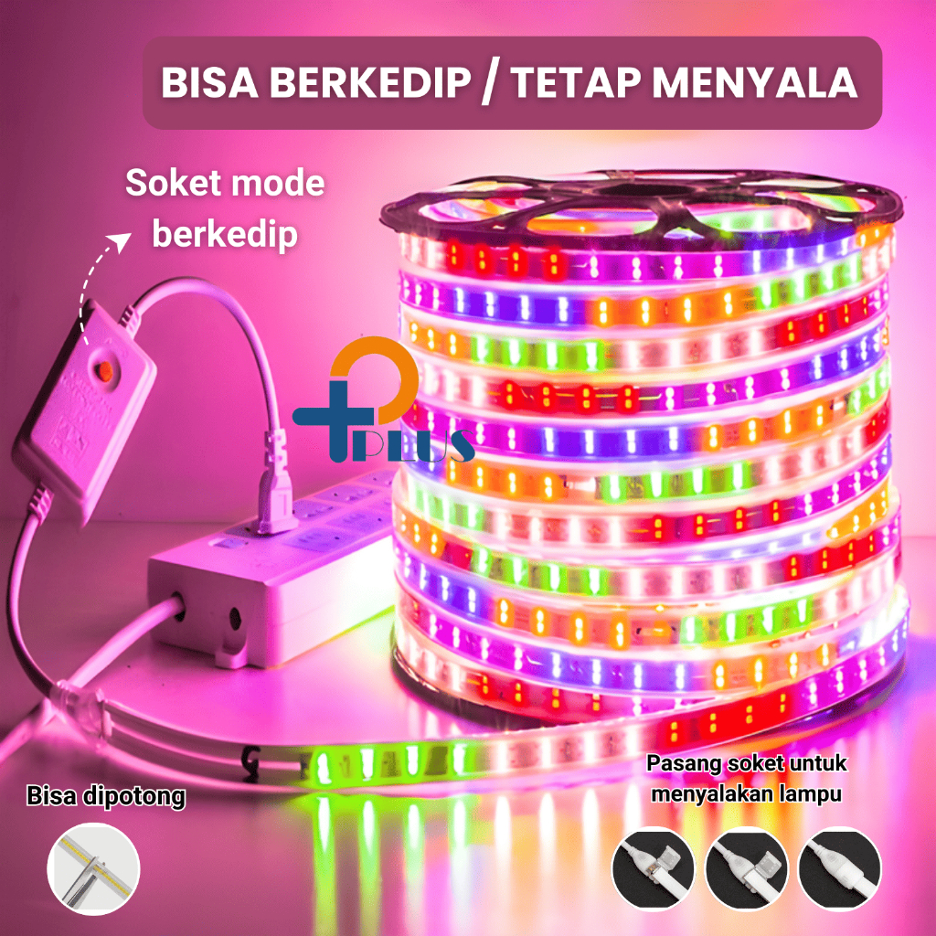 1 Roll 100m Lampu LED Strip Merah Putih Bonus 5 Soket / led strip Merah Putih full 100m bonus 5 socket / Lampu Ramadhan