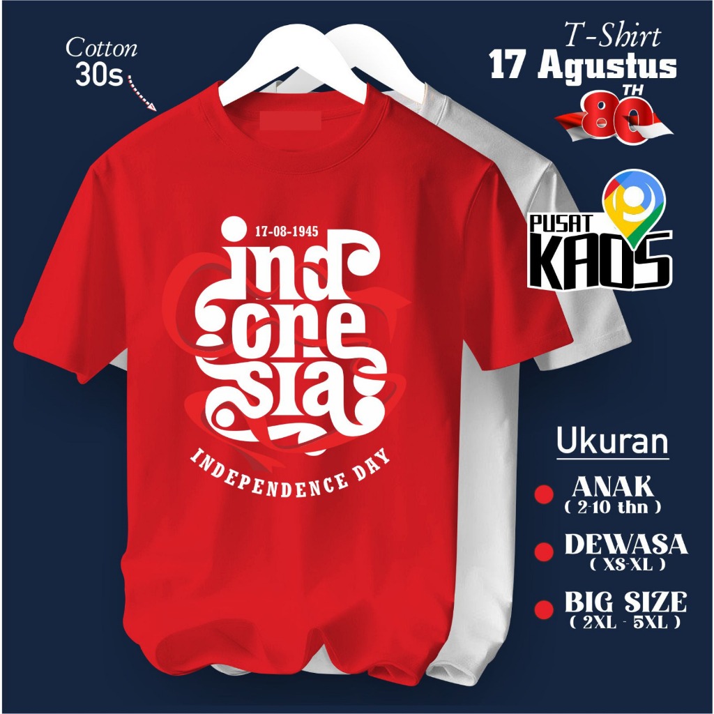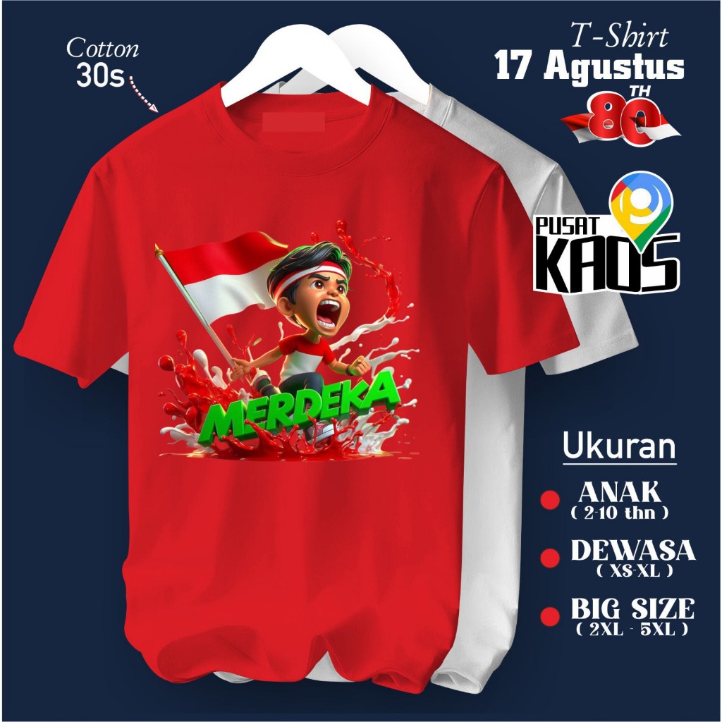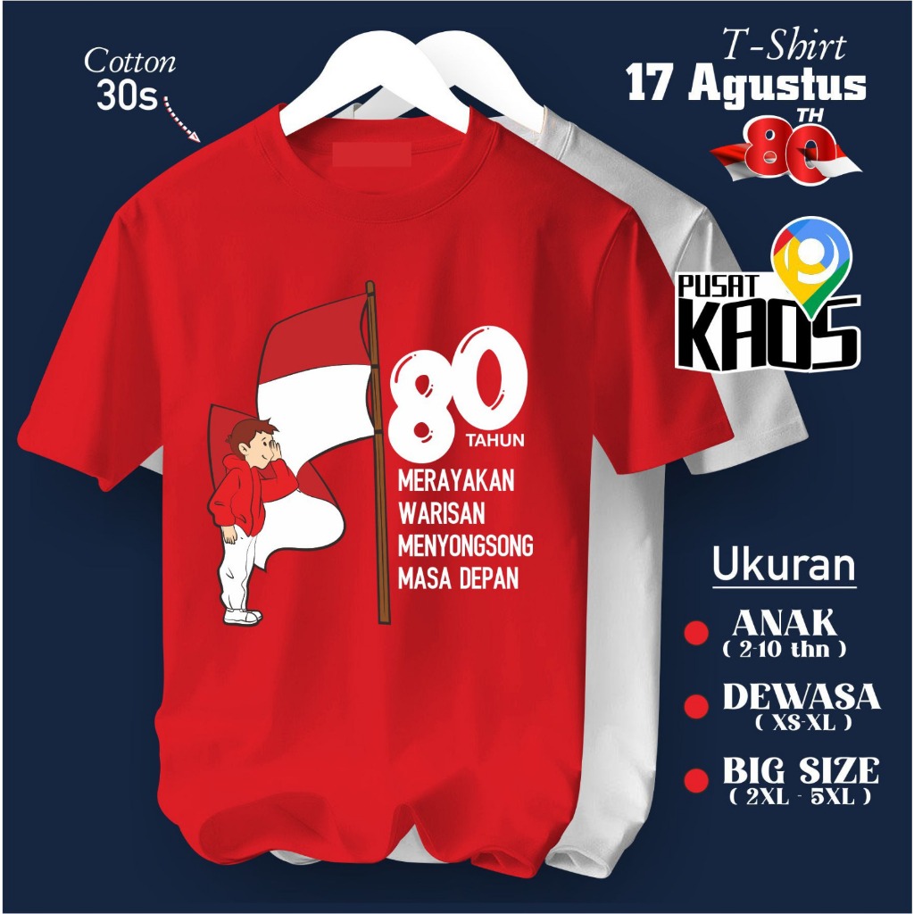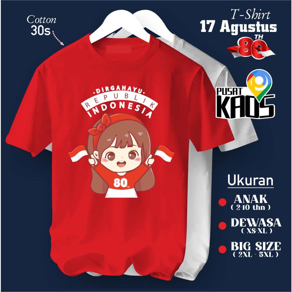 BAJU KAOS DIRGAHAYU INDONESIA 17 AGUSTUS 2025 KAOS HUT RI KE 80 ANAK DEWASA PREMIUM