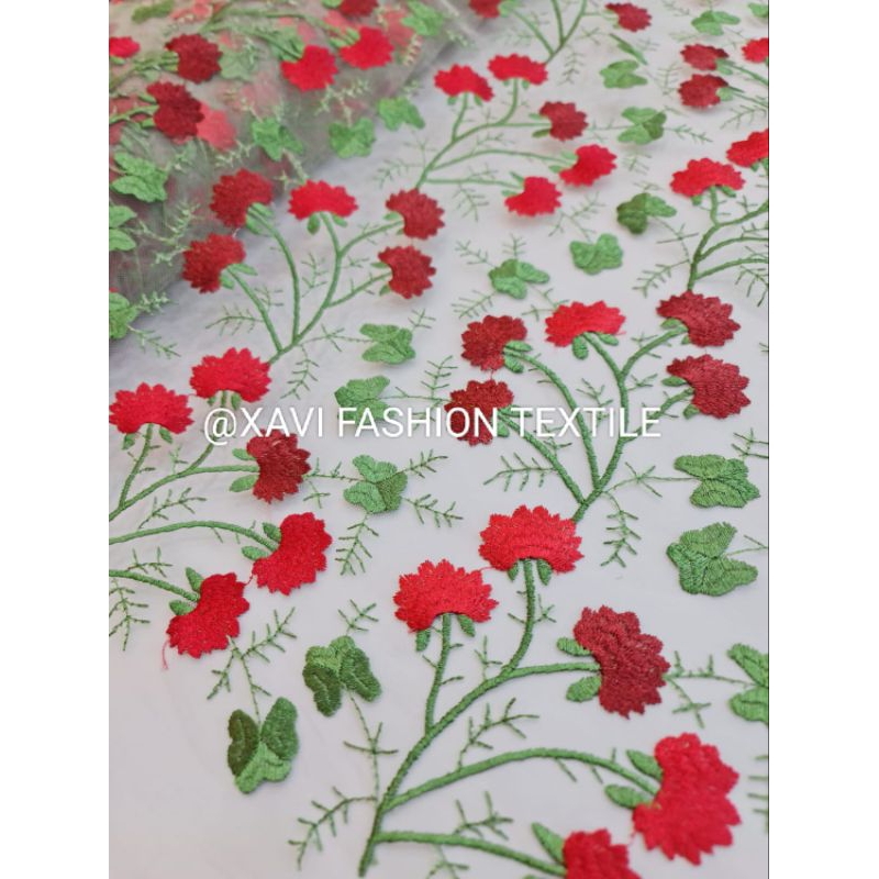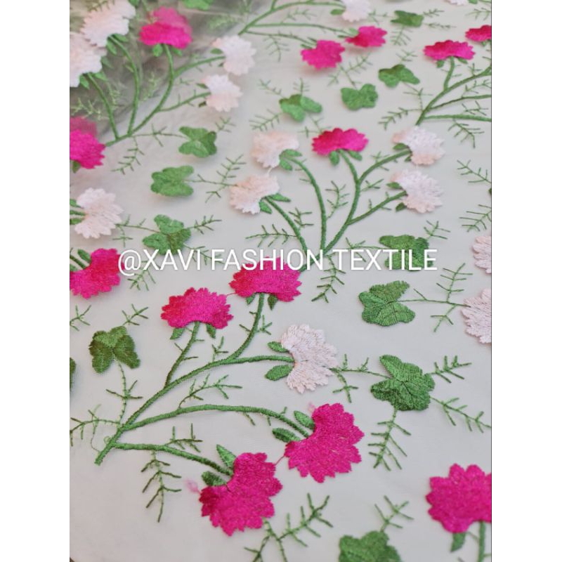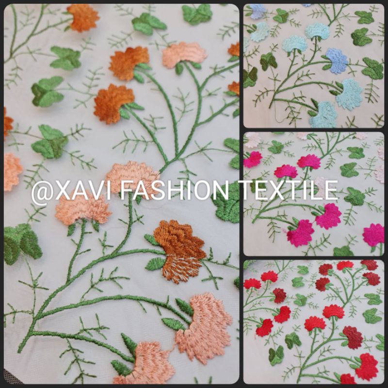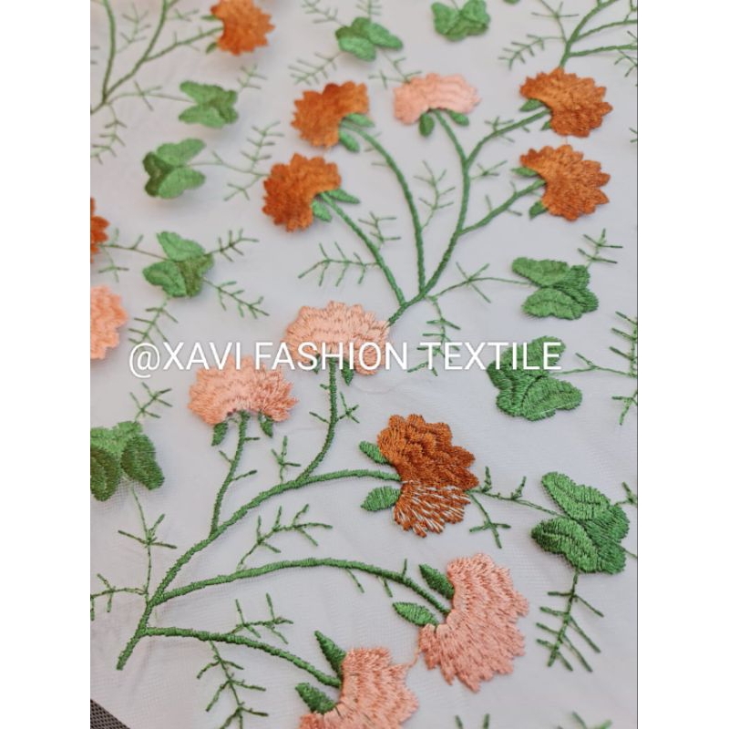 Kain Tille Premium Bordir Bunga || Harga Per Setengah Meter(50cm)