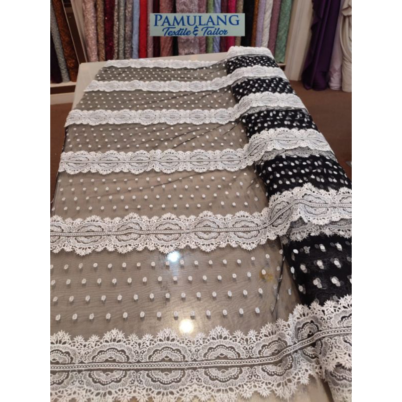 Kain Tille Bordir Motif Ivory 2Tone || Harga Per Setengah Meter(50 cm)