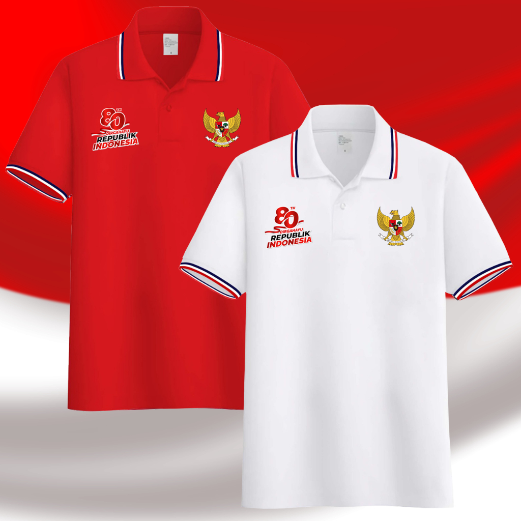 Kaos polo pria HUT RI 80 / Kaos Kemerdekaan RI 80th / Kaos 17 agustus 2025 / kaos pria merah putih