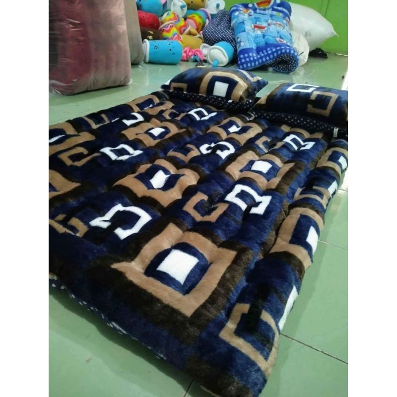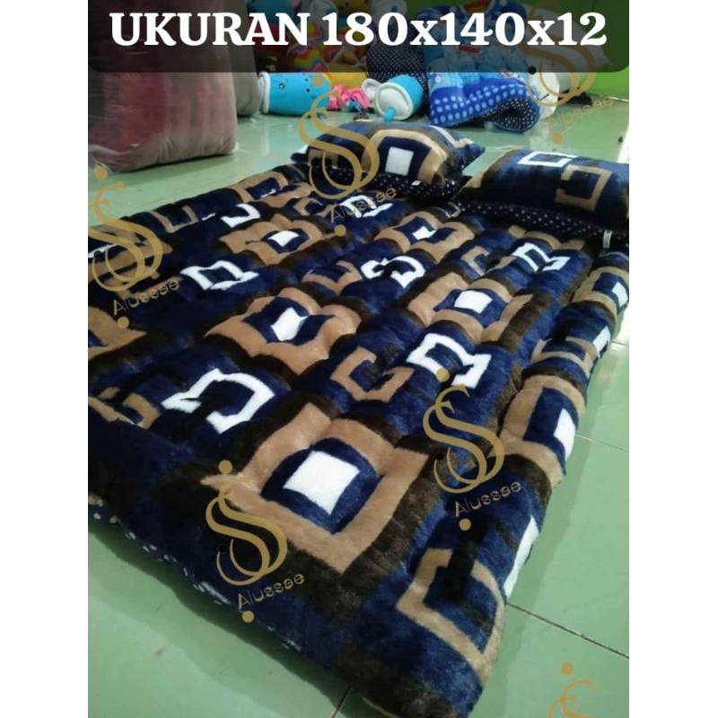 Kasur lantai bulu MOTIF HIGH QUALITY ukuran P180xL140xT12super tebal GRATIS 2 bantal - MY PEARS