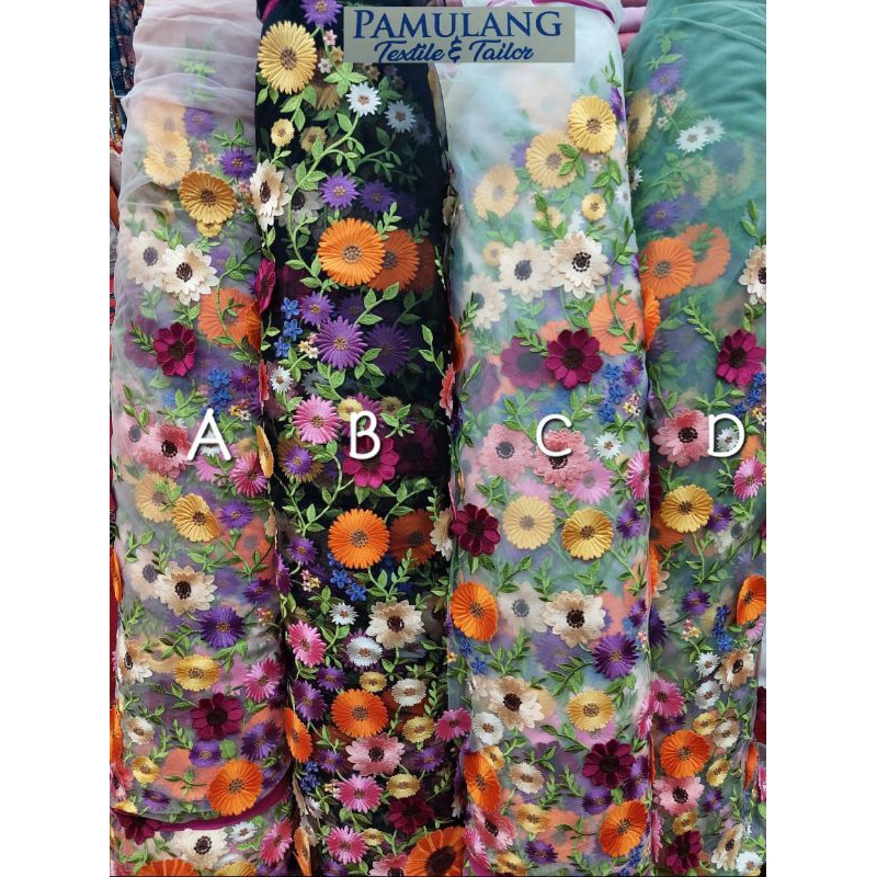 Kain Tille 3D New Valentiino Bordir Motif || Harga Per Setengah Meter(50 cm)