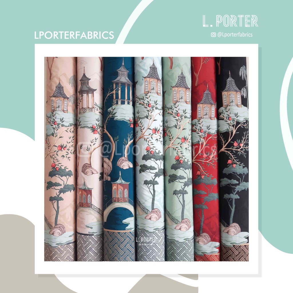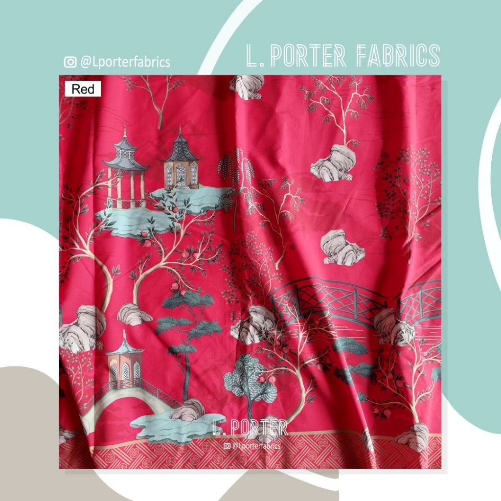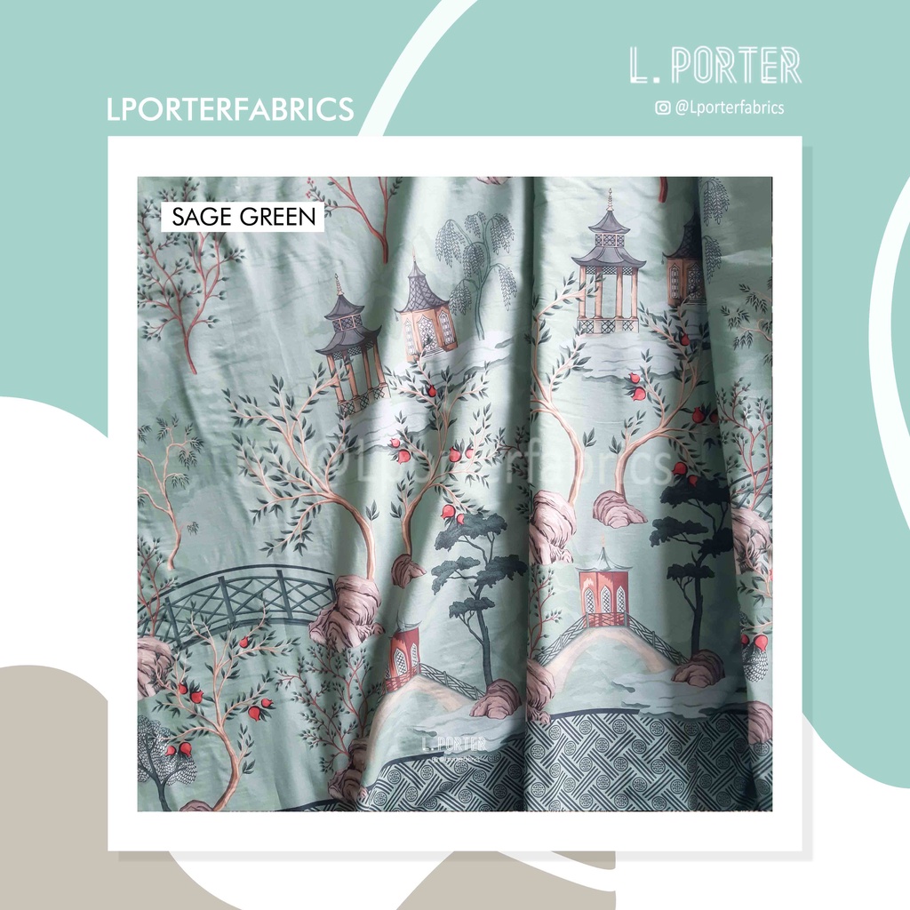 READY STOCK - Kain L. Porter Fabrics Katun Primis Motif Pagoda Garden/ Katun Print/ Cheongsam wanita/ Cheongsam / dress
