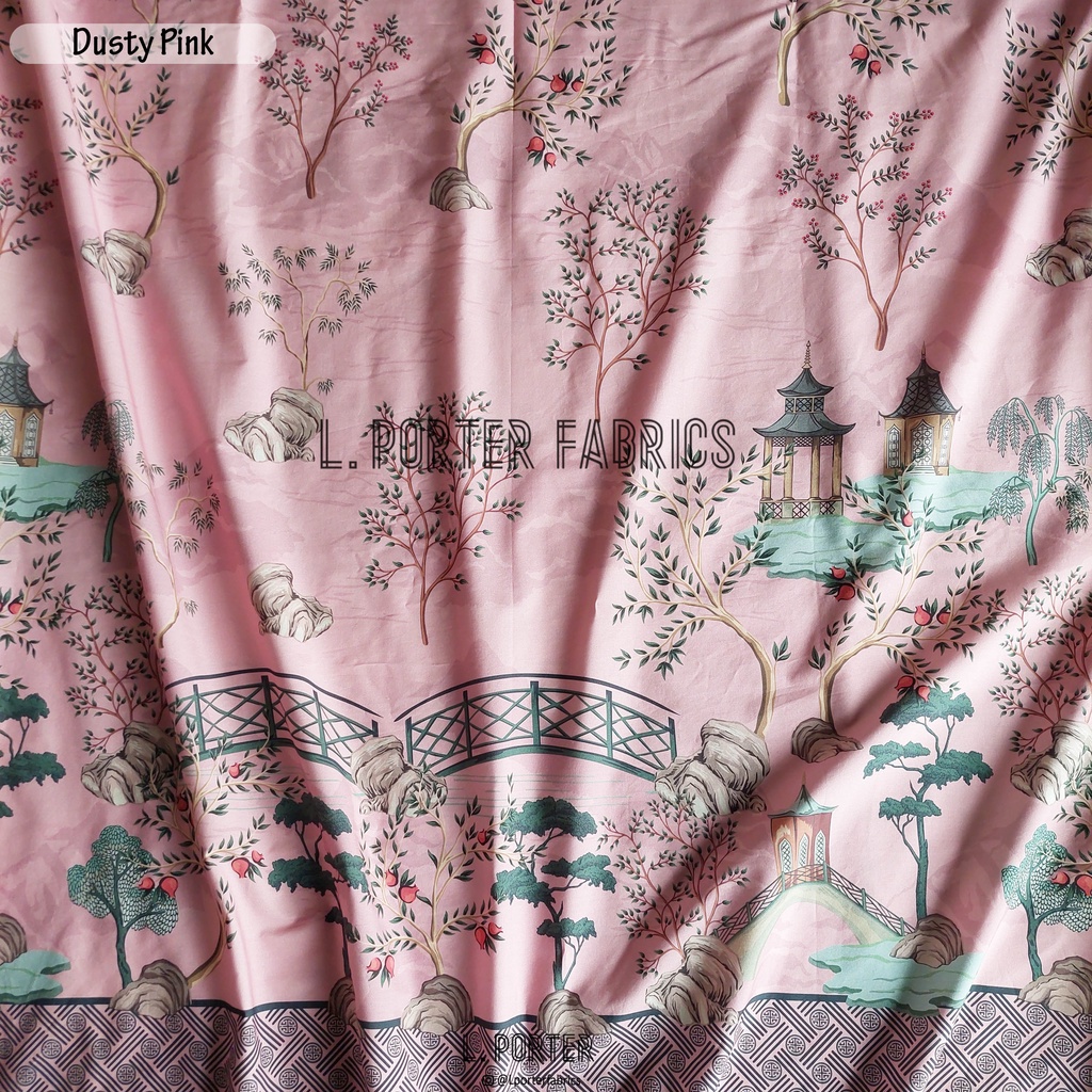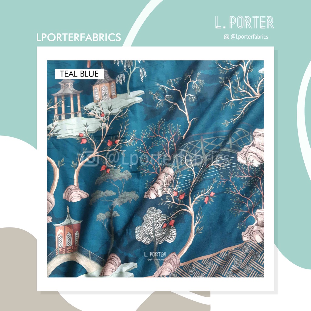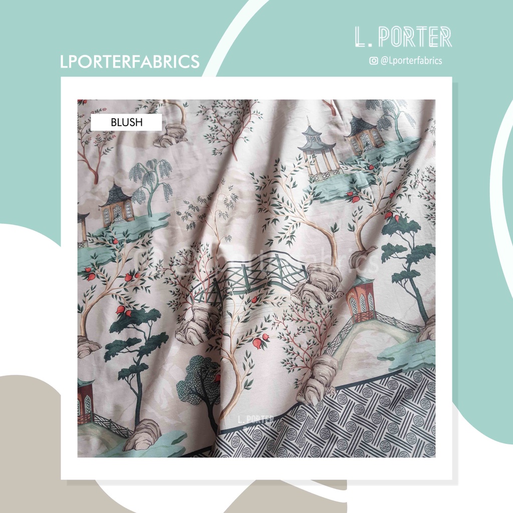 READY STOCK - Kain L. Porter Fabrics Katun Primis Motif Pagoda Garden/ Katun Print/ Cheongsam wanita/ Cheongsam / dress