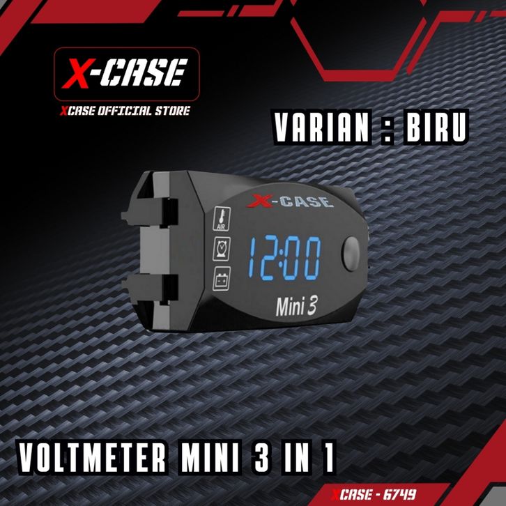 Voltmeter Motor Mini 3 In 1 Suhu Jam Temperatur 12 Volt Waterproof Universal 6749