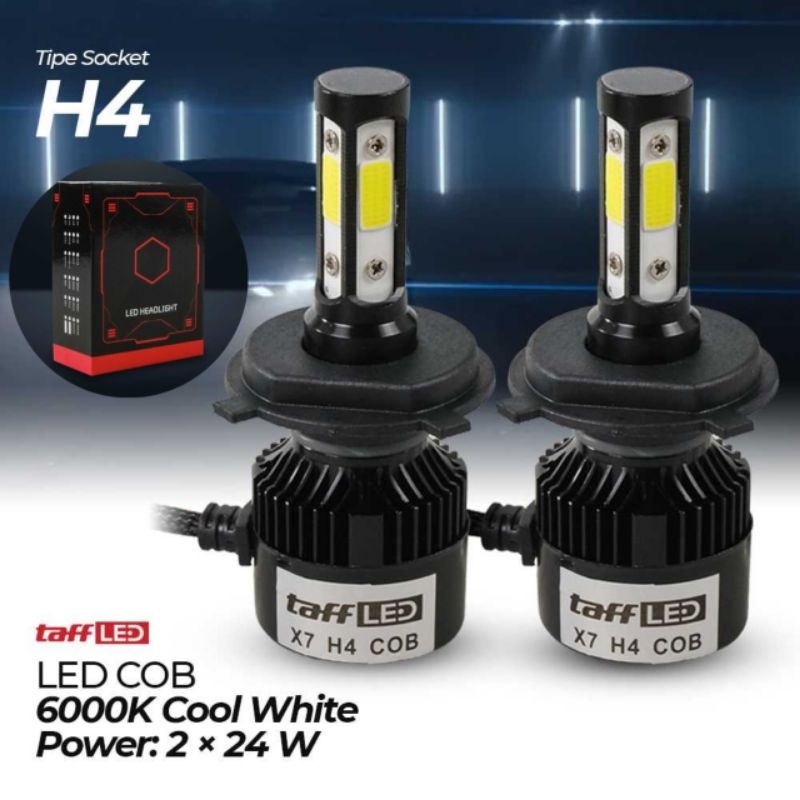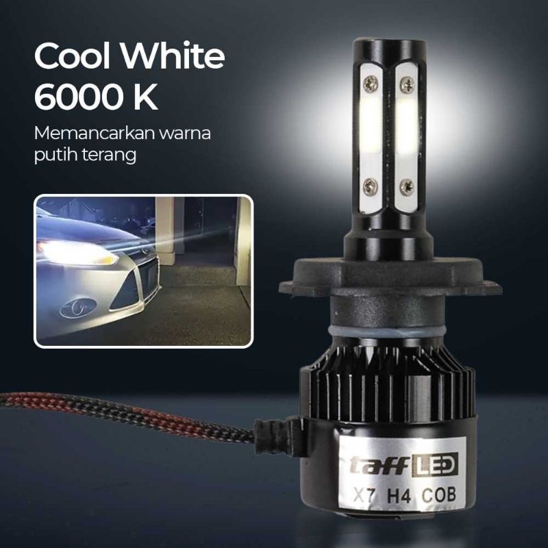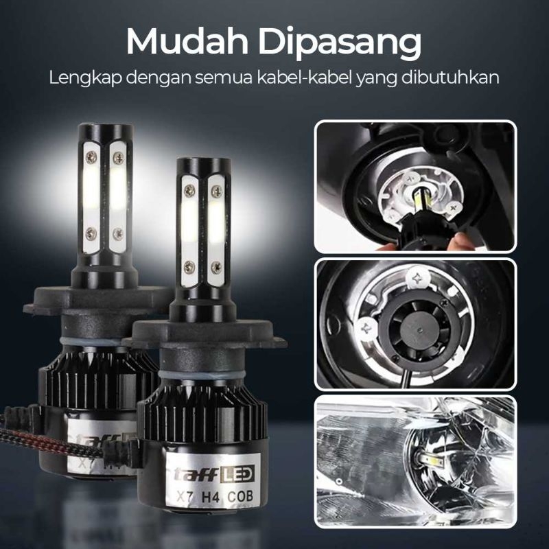 TAFFLED X7 H4 LAMPU DEPAN MOBIL LED COB HEADLIGHT COOL WHITE 2 PCS