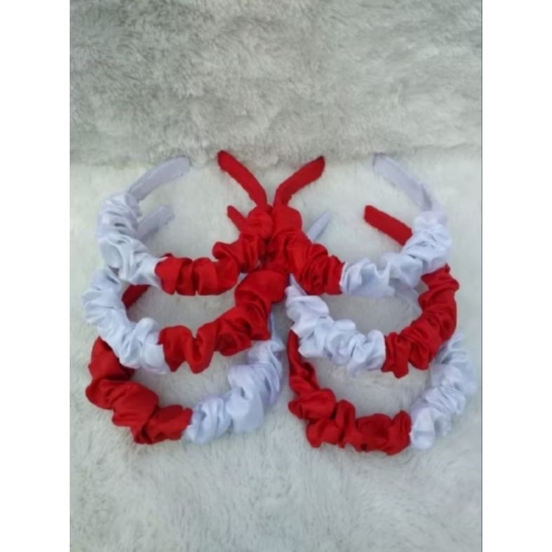 LUSINAN 12 PCS BANDO MERAH PUTIH UNTUK 17 AGUSTU / BANDO SCRUNCHIE VIRAL