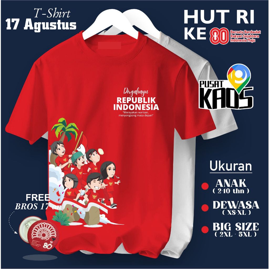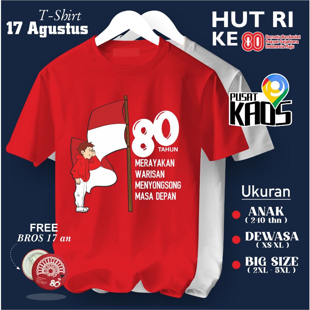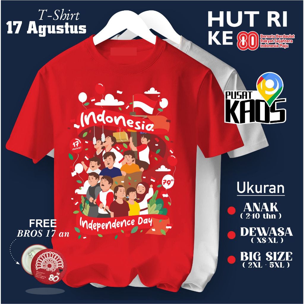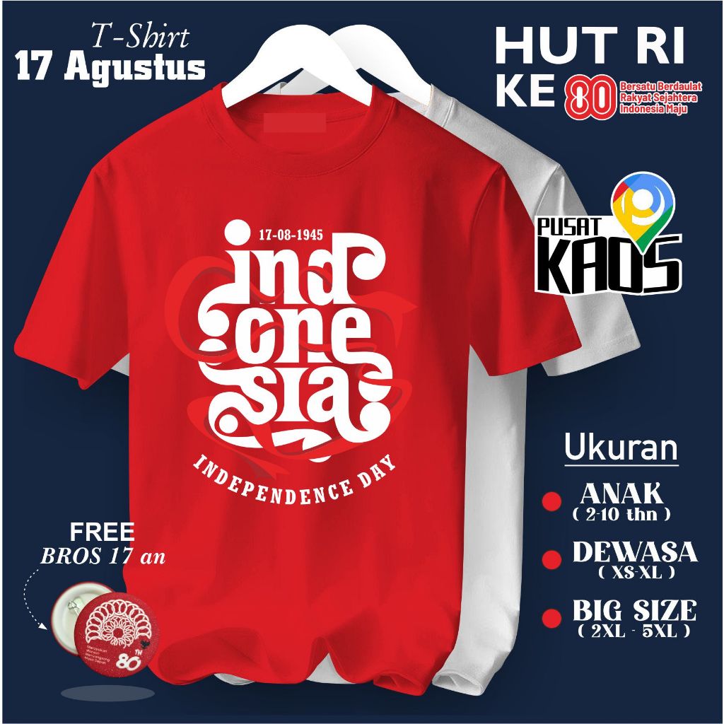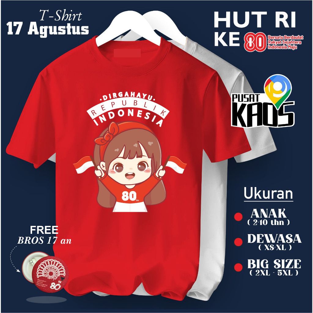 BAJU KAOS 17 AGUSTUS HUT KE-80 DIRGAHAYU INDONESIA KATUN COMBAD 30S LAKI LAKI DAN WANITA PREMIUM