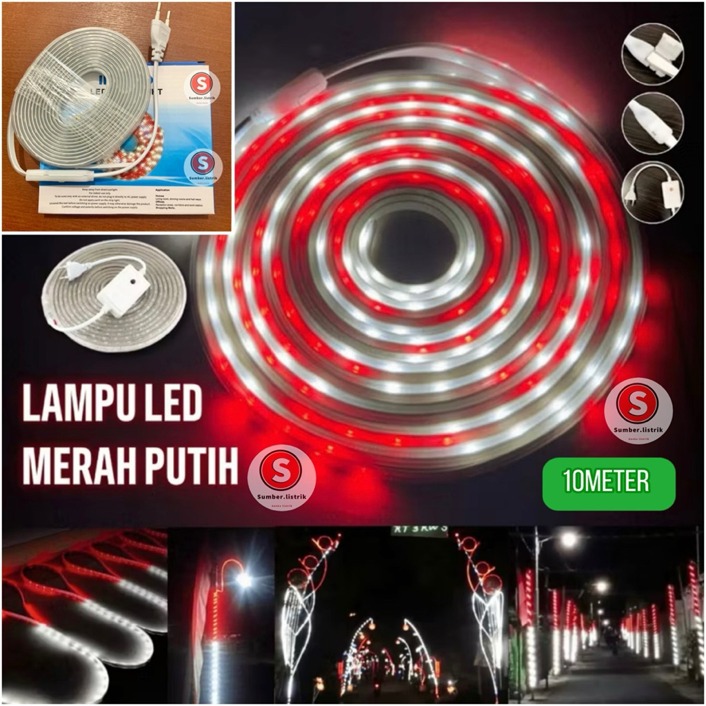 Lampu Strip Merah Putih LED Selang 10M Paket Lengkap AC 220V Lampu Hias Agustus Garansi