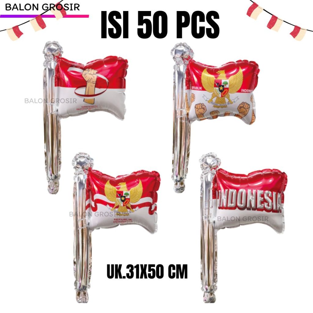 Balon Foil Tangkai Bendera Merah Putih / Balon DIRGAHAYU RI 17 Agustus/Balon Foil Pentungan Bendera Stik Garuda Merah Putih-50 PCS