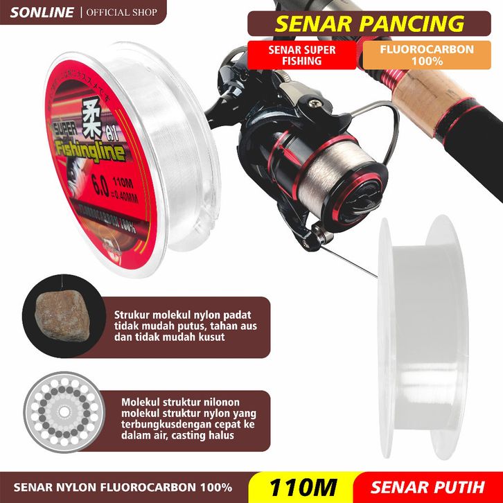 Sonl-Ine Senar Pancing 110M Super Strong 100 Fluorocarbon Fishing Line Senar Pancing Kuat Bahan Nilon Transparan Senar