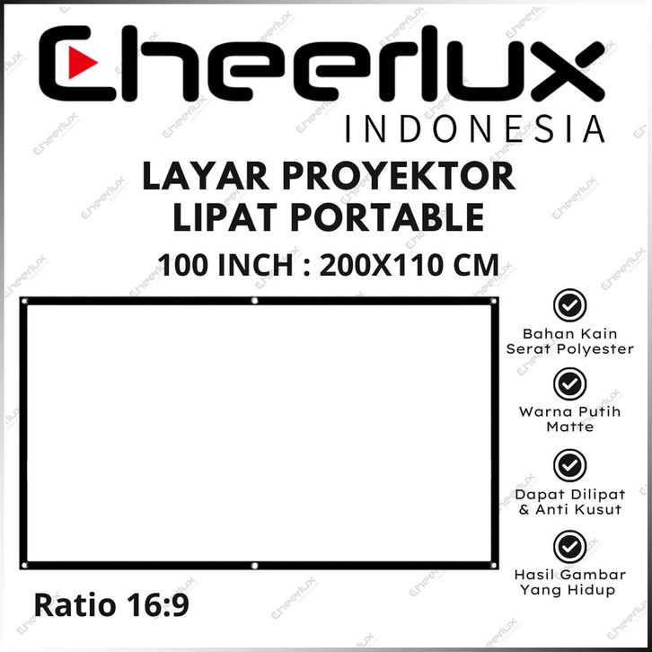 TERLARIS KAIN LAYAR PROYEKTOR GANTUNG 100 INCH RATIO 16:9 | LAYAR PROYEKTOR PORTABLE 100 INCH | SIMPLE SCREEN PROJECTO