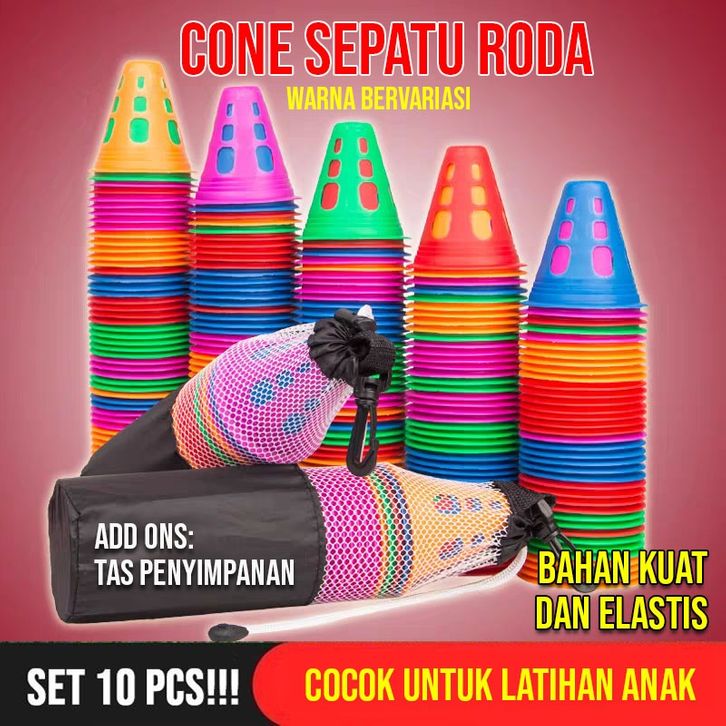 BBAK SET 10 PCS Cone Kerucut Sepatu Roda Bahan Kuat & Elastis Warna Bervariasi EXTRA TAS PENYIMPANAN